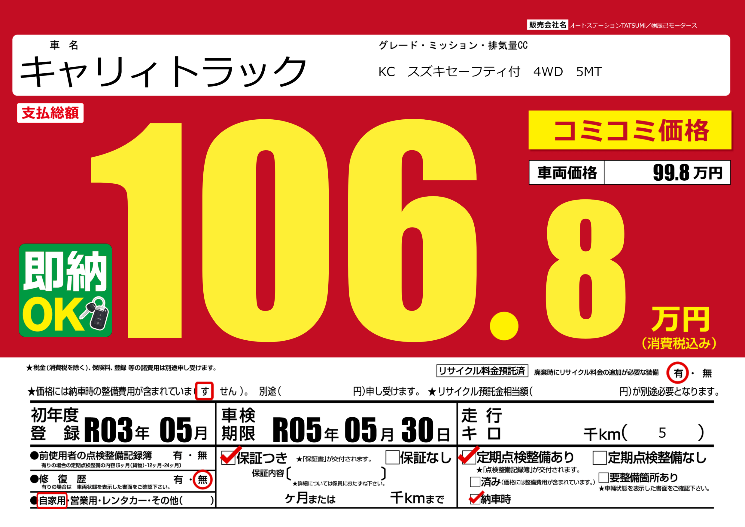 あり | 車検制限 | R05年05月30月 |