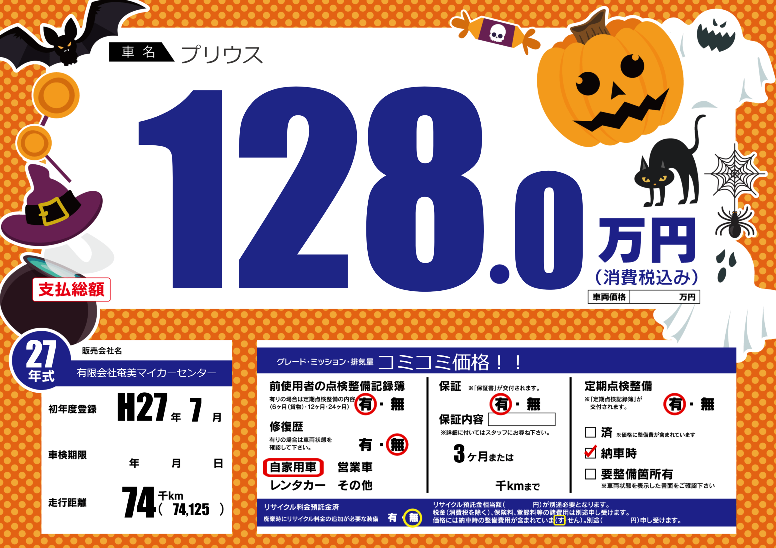 | 走行キロ | 7.4万km | 初年度登録 | H27年7月 |