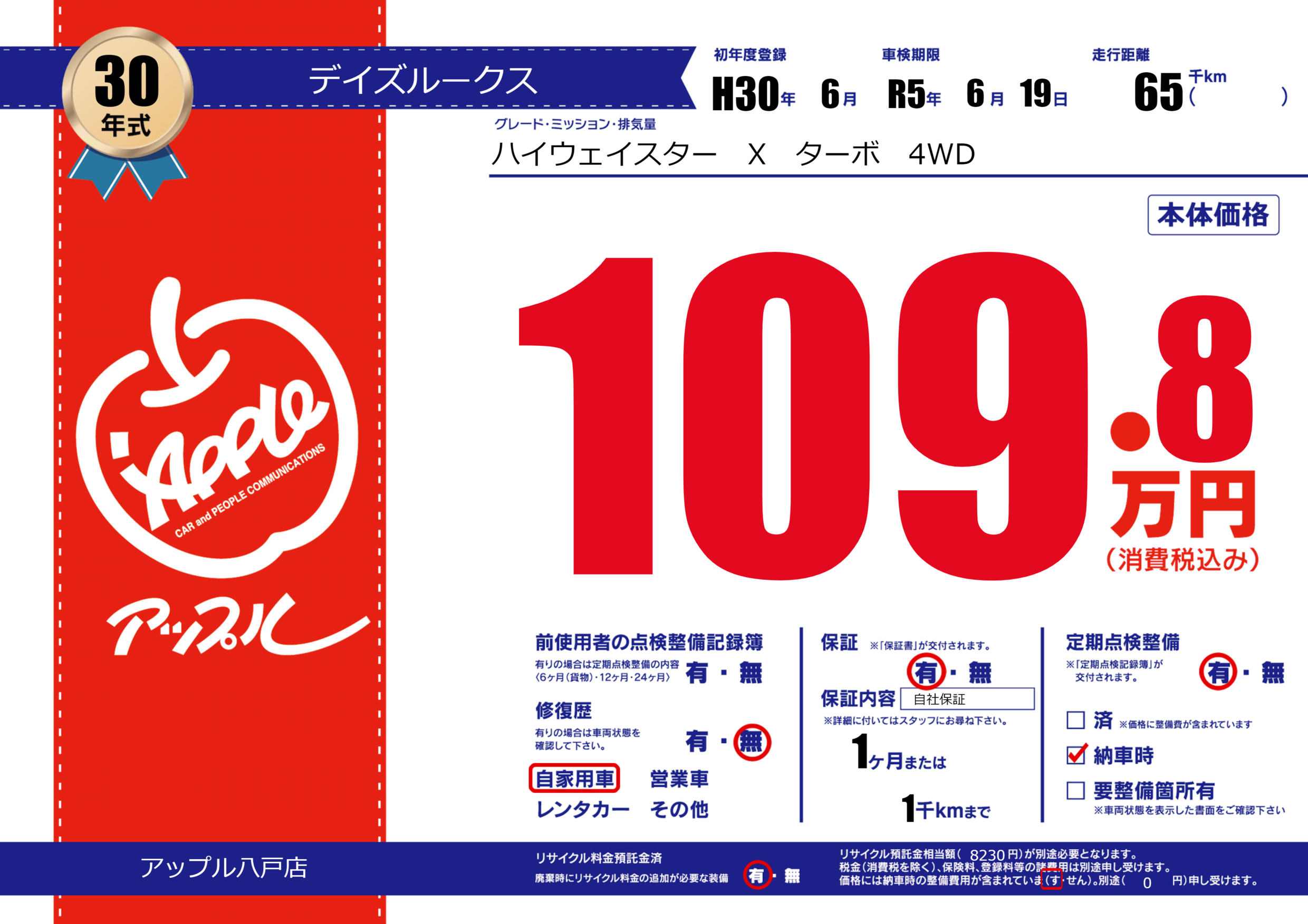 保証付き 保証内容( 自社保証) 1ヶ月または(1)千kmまで |