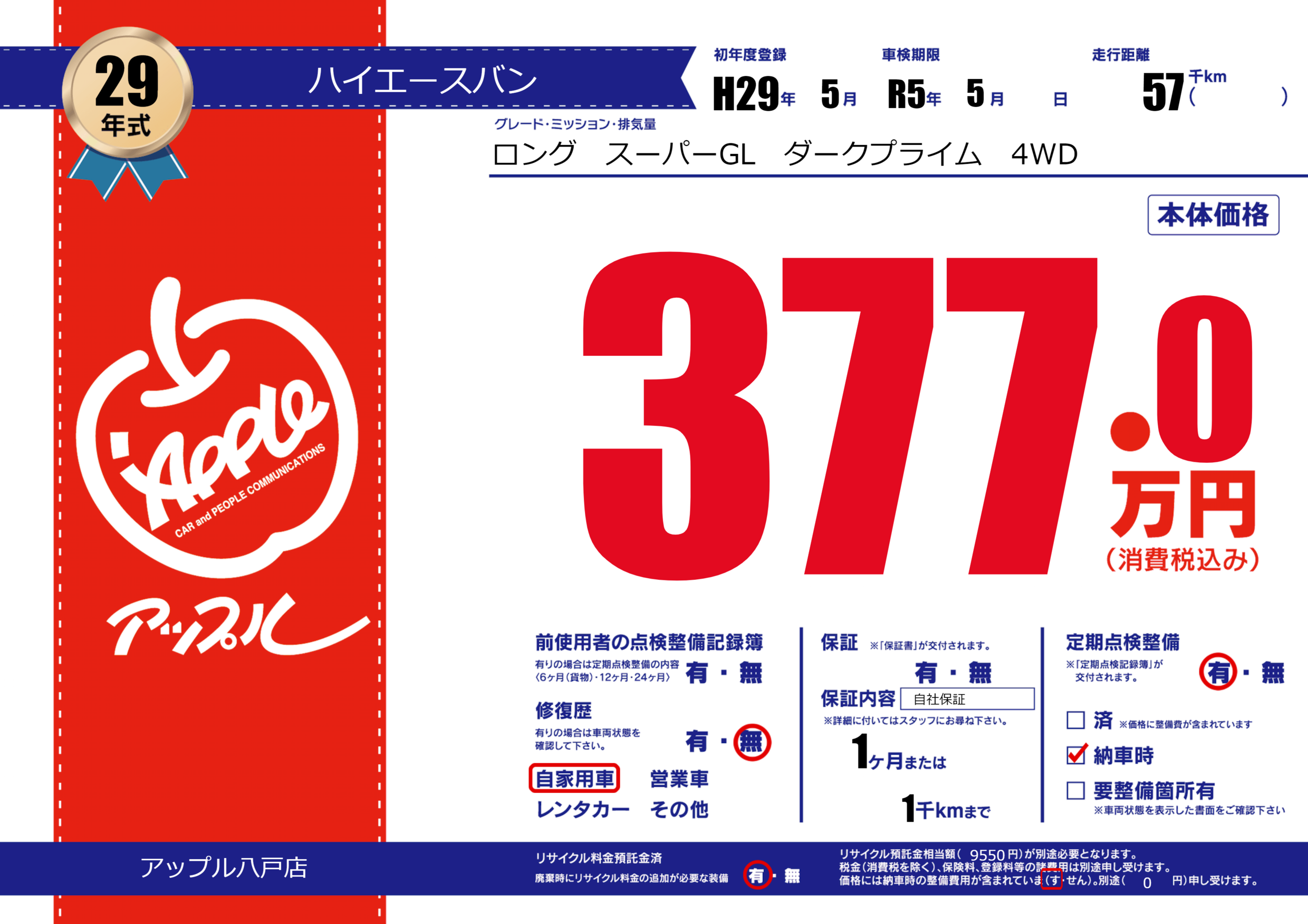 | 車名 | ハイエースバン | グレード ミッション 排気量 |