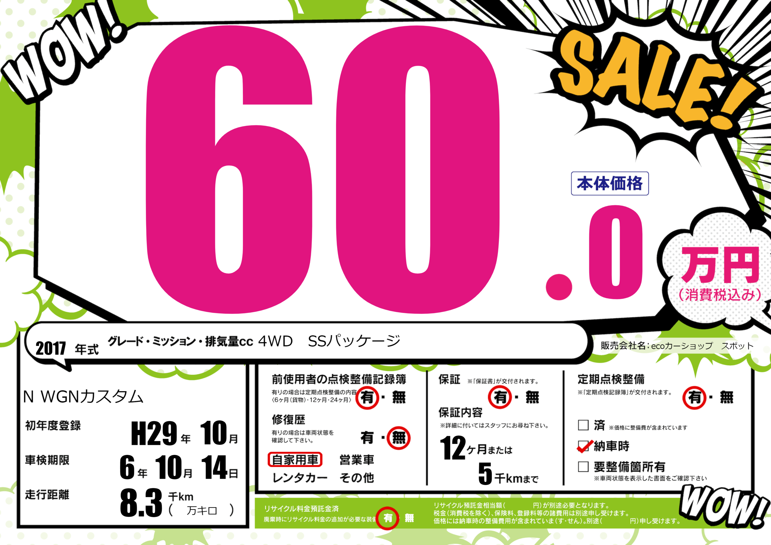 | 車名 | N WGNカスタム | グレード ミッション 排気量 |