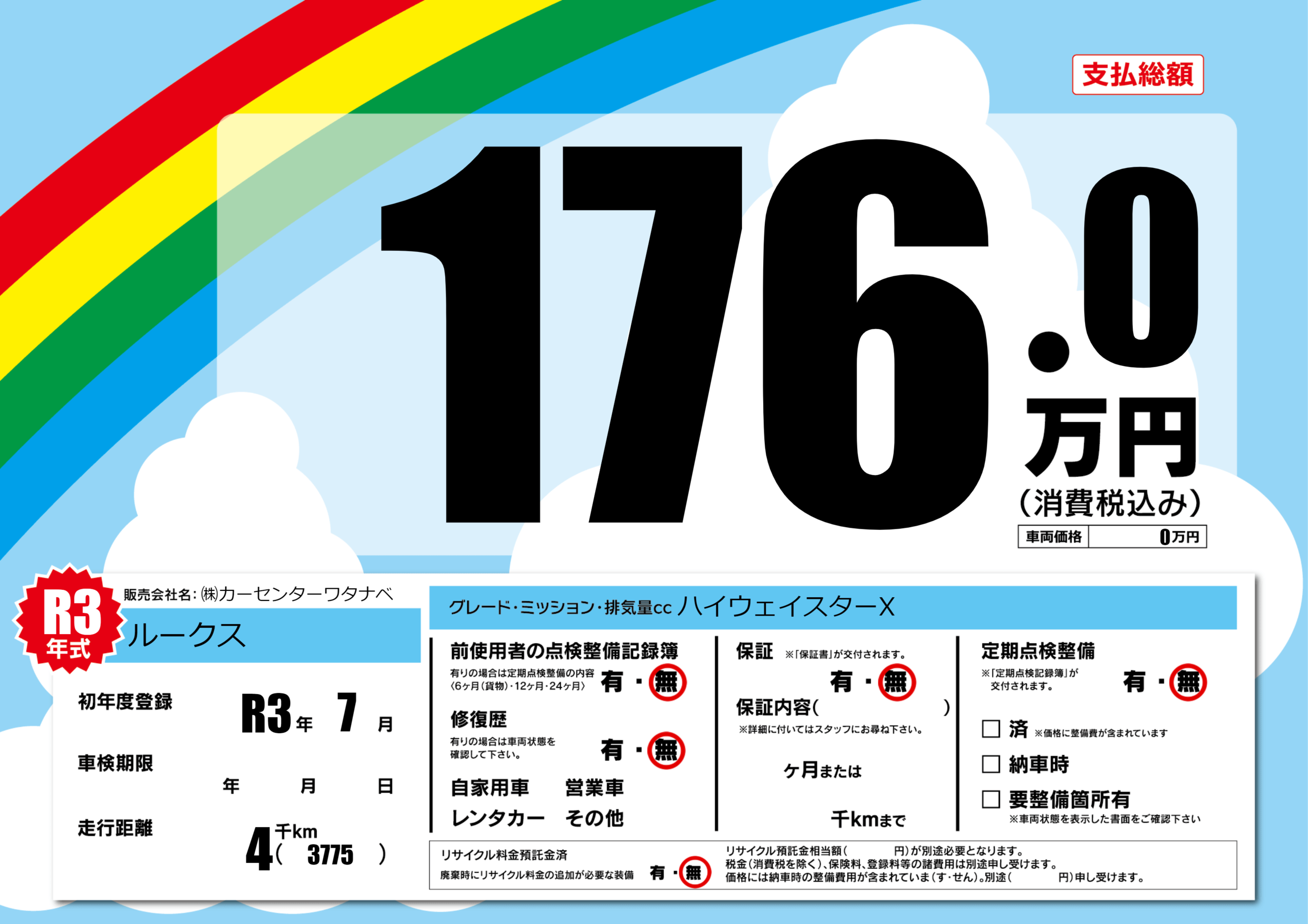| 走行キロ | 0.4万km | 初年度登録 | R3年7月 |