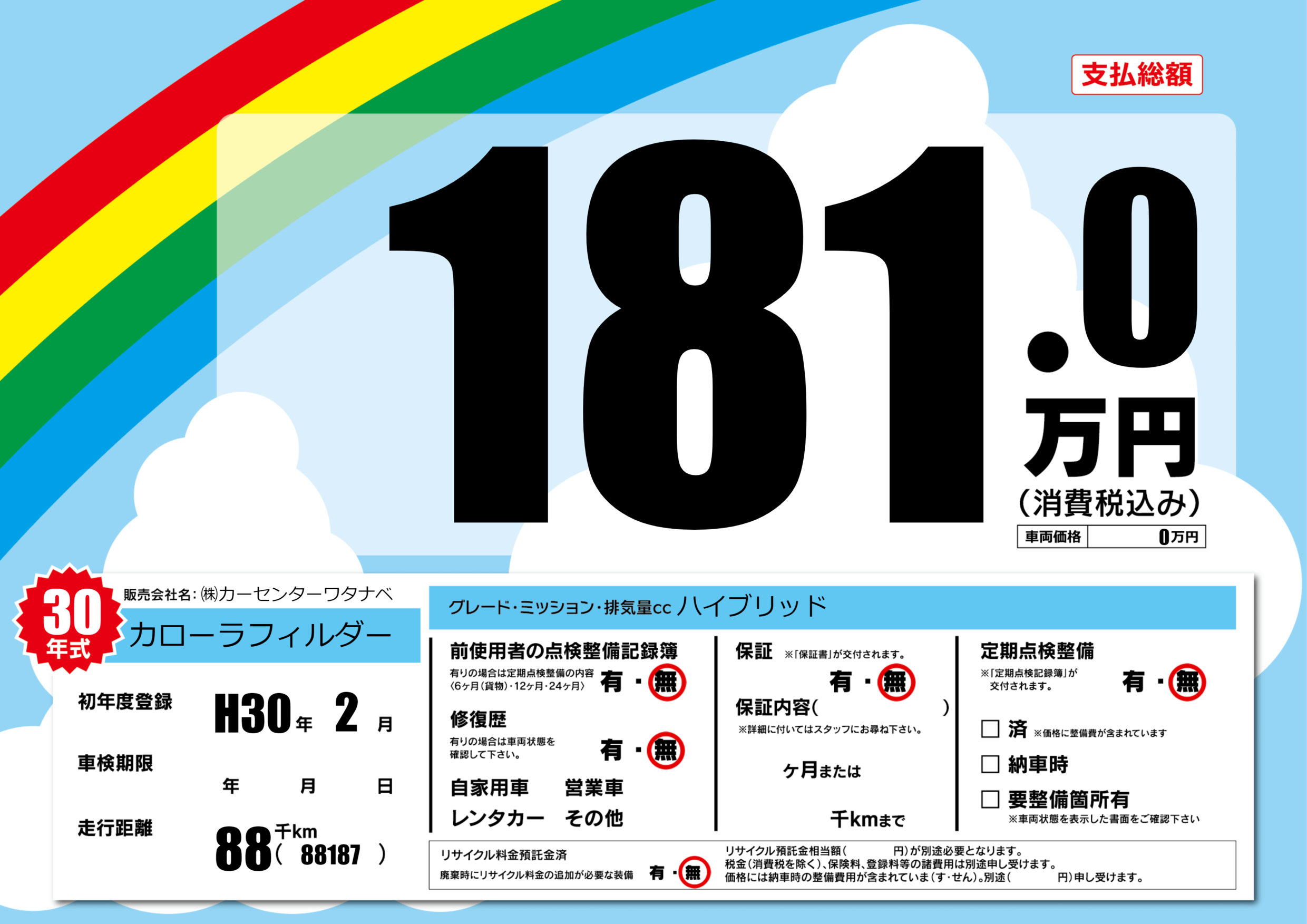 | 車検制限 | - 年 - 月 - 日 | ||