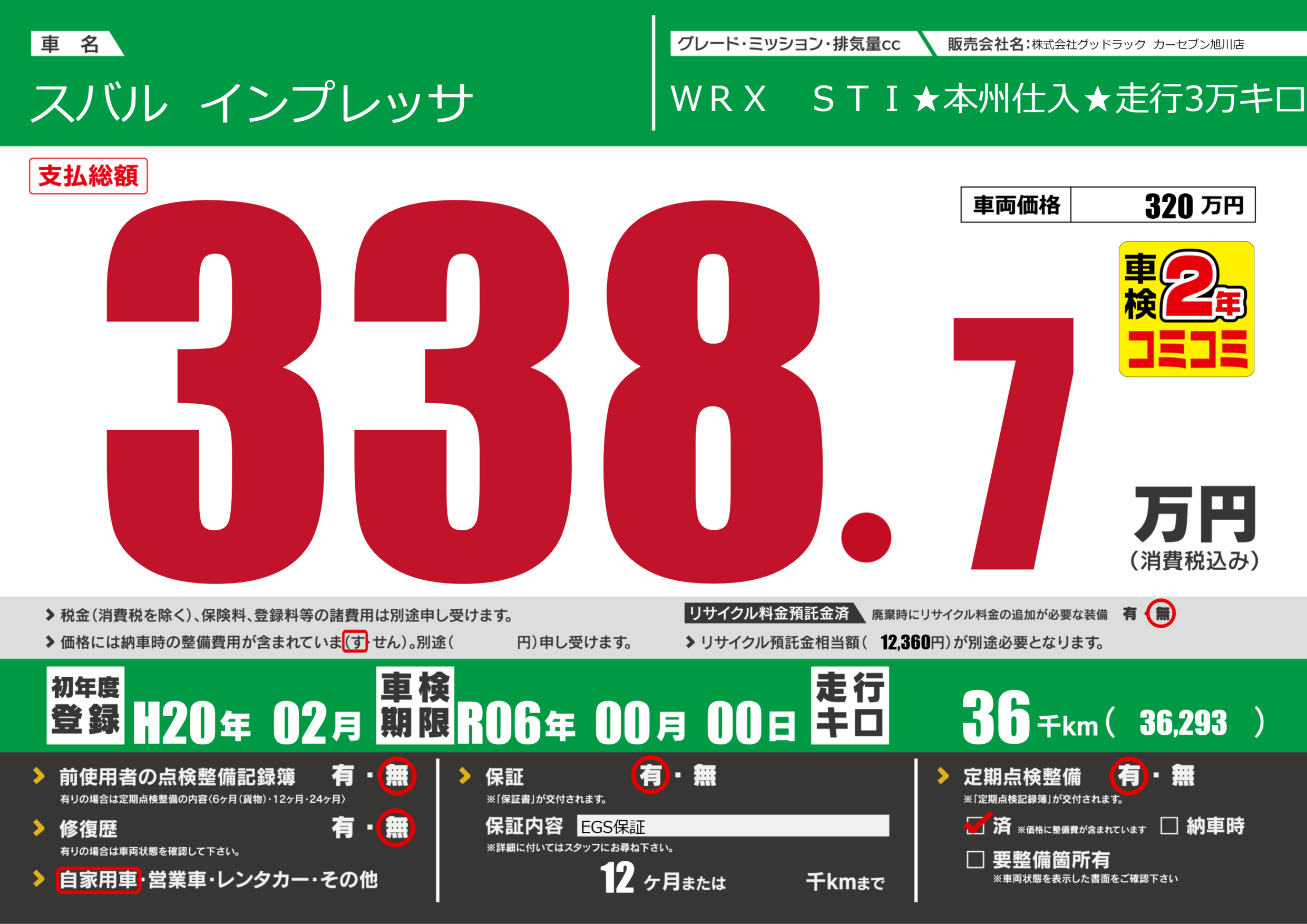 | 定期点検整備 | 定期点検整備あり 定期点検整備済み | ||