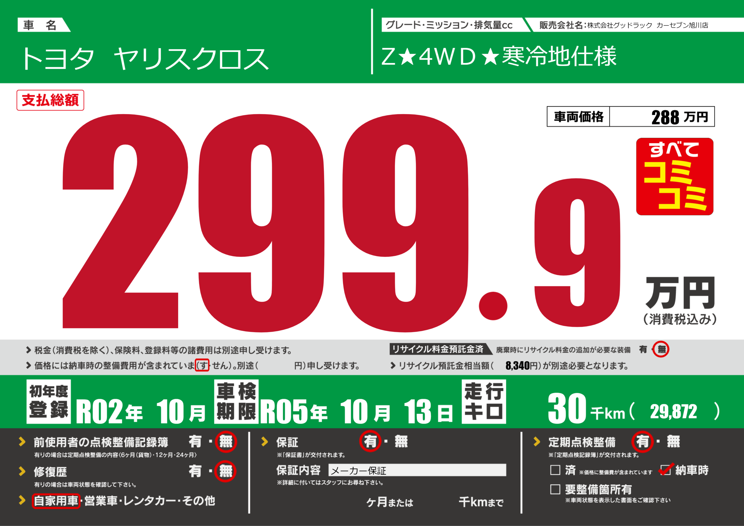 | 走行キロ | 3万km | ||