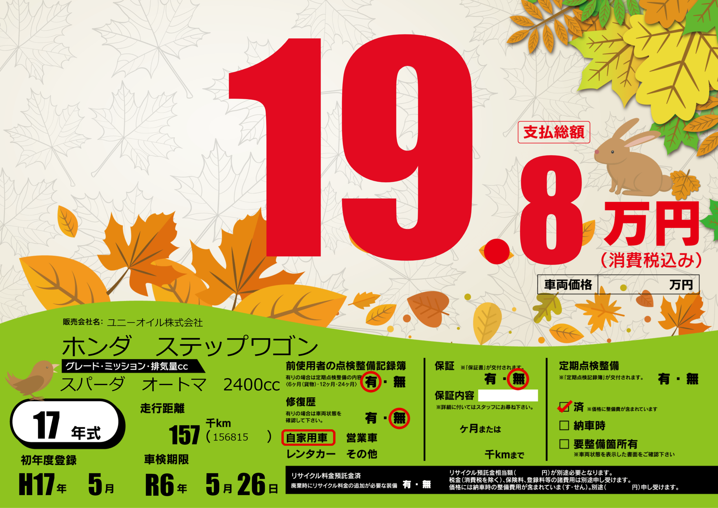 なし | 車検制限 | R6年5月26月 |