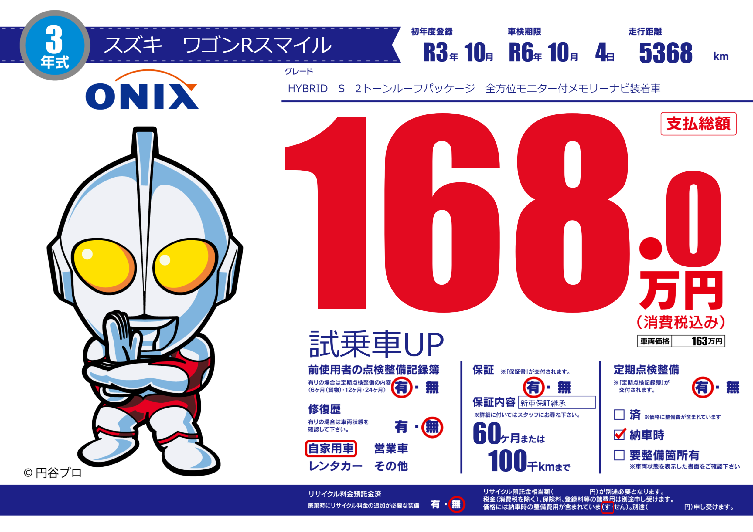 | 走行キロ | 536.8万km | 初年度登録 | R3年10月 |