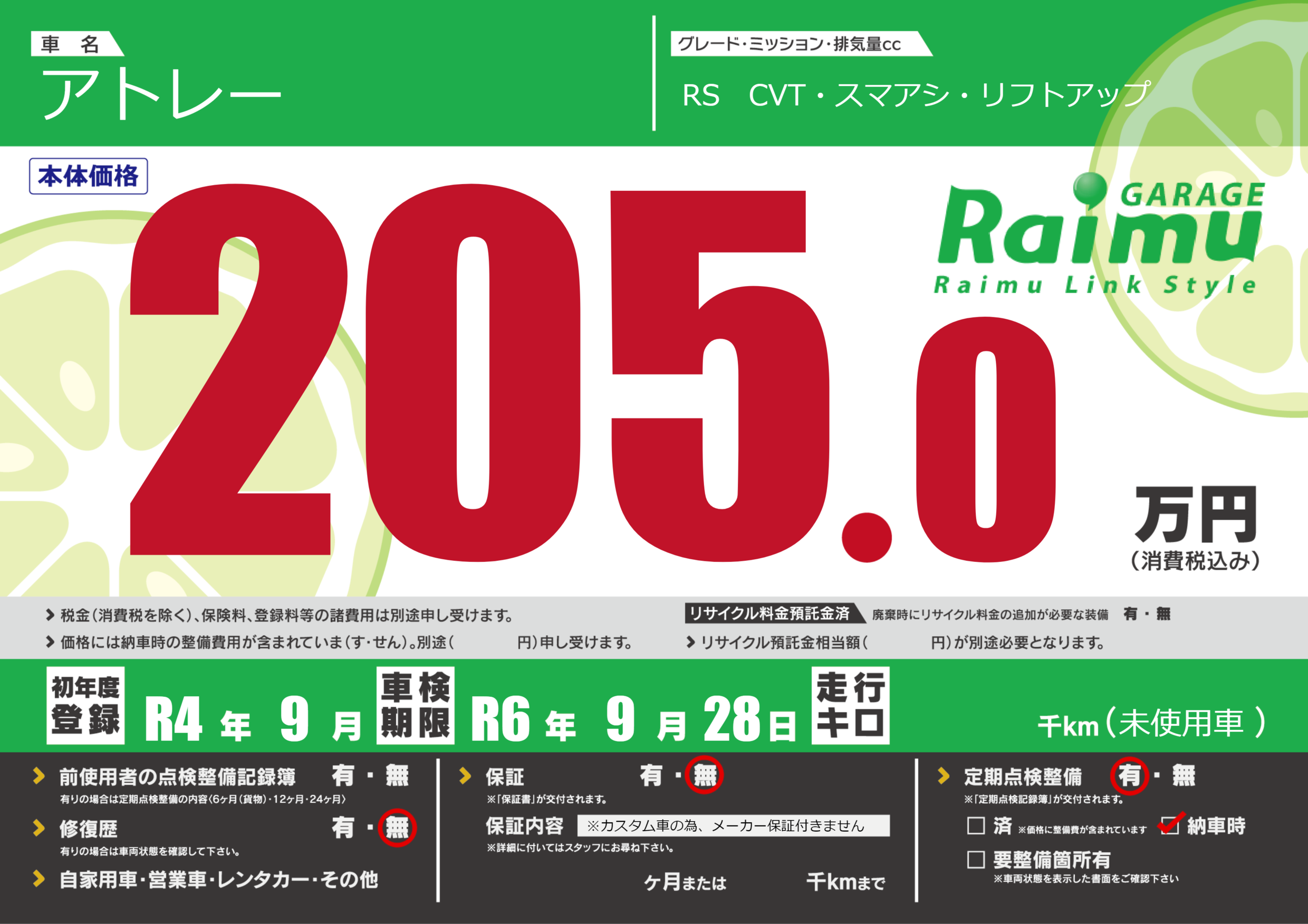 なし | 車検制限 | R6年9月28月 |