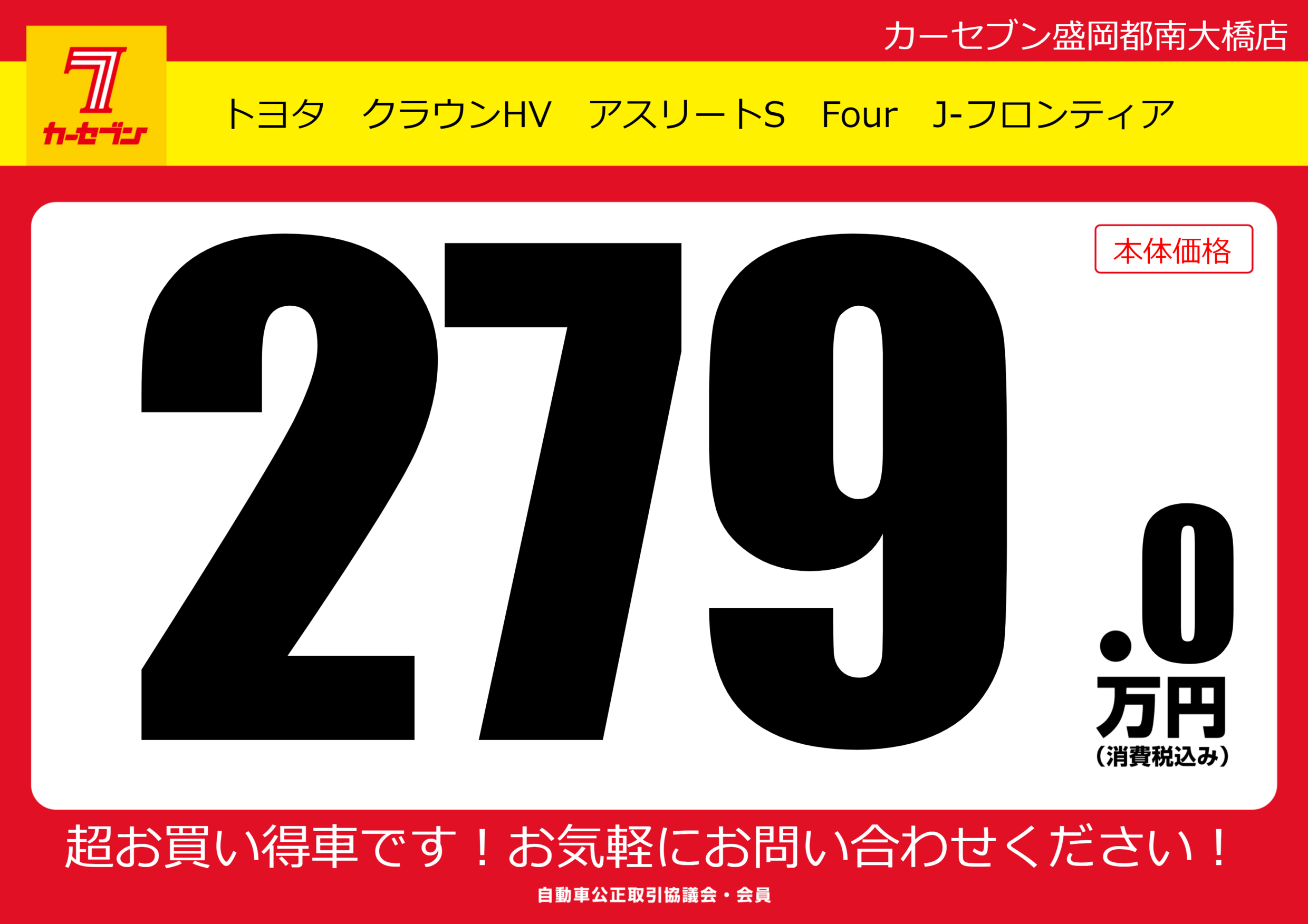 | 車名 | トヨタ クラウンHV アスリートS Four J-フロンティア | グレード ミッション 排気量 |