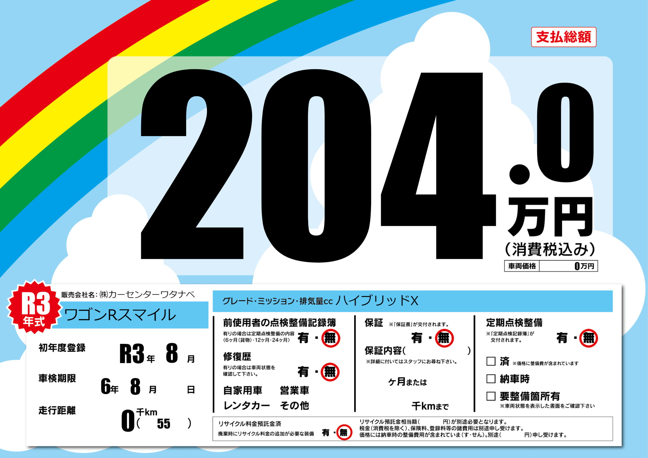 | 車名 | ワゴンRスマイル | グレード ミッション 排気量 |