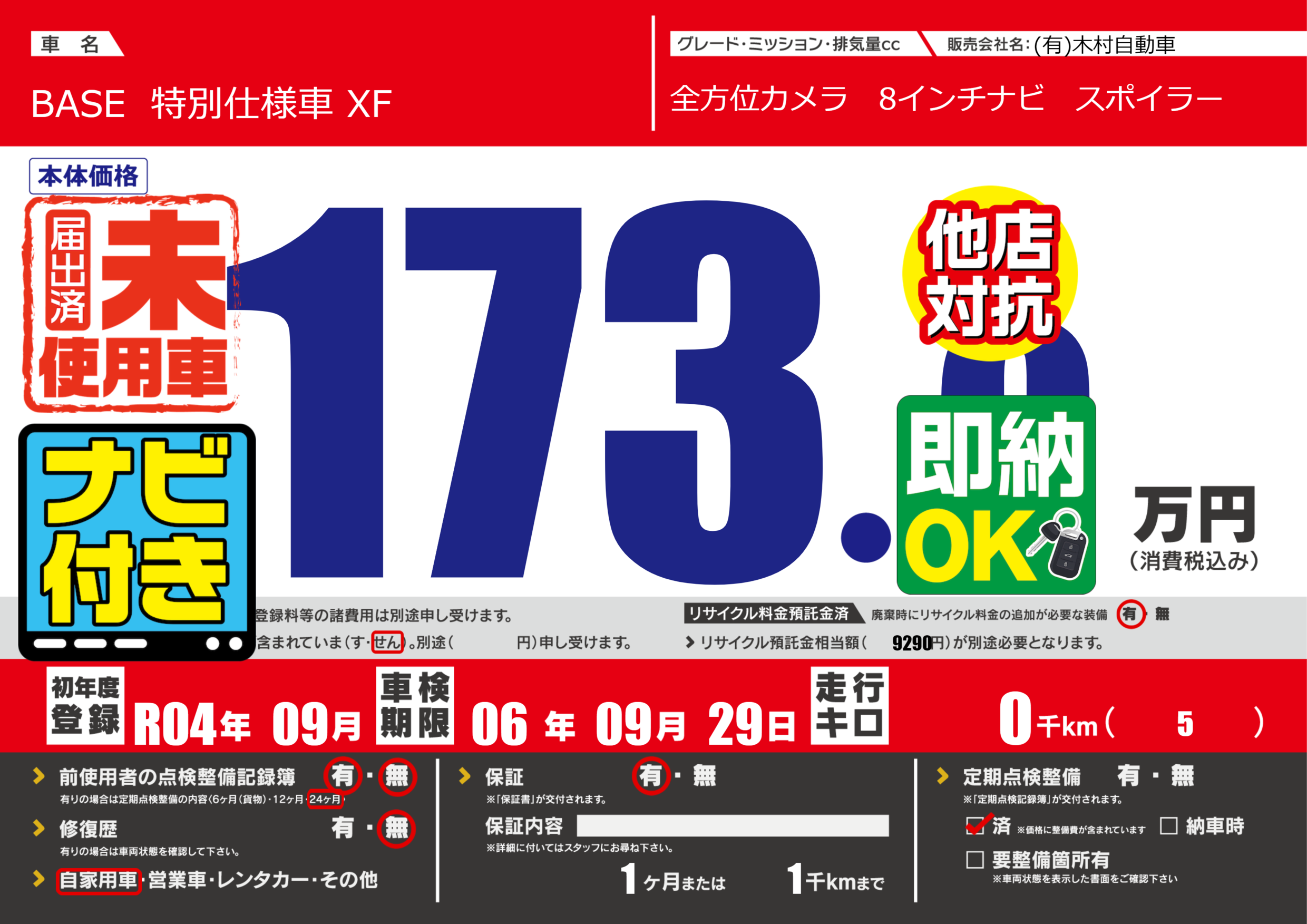 | 定期点検整備 | 定期点検整備済み | ||