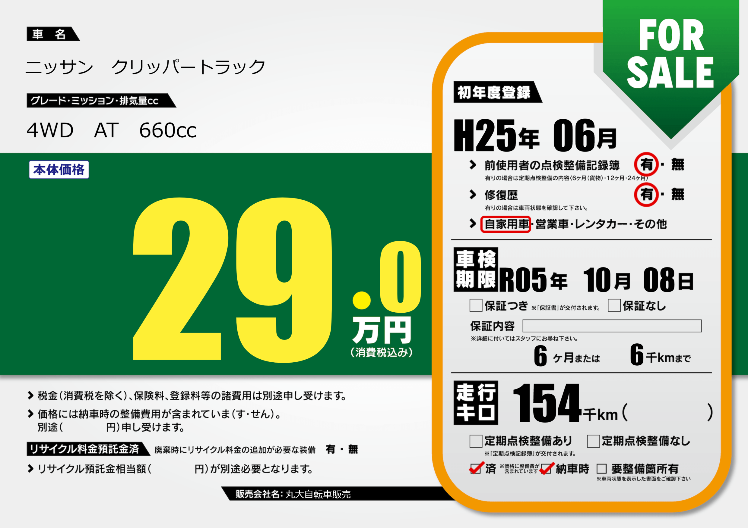 | 定期点検整備 | 定期点検整備済み 納車時あり | ||