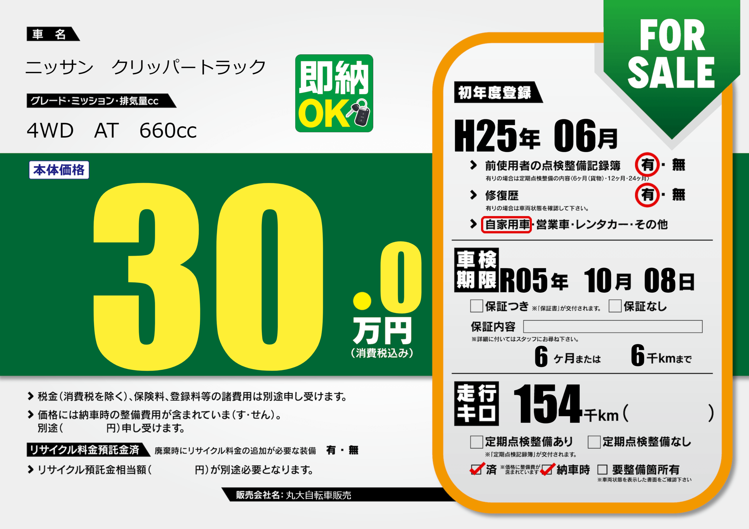 | 定期点検整備 | 定期点検整備済み 納車時あり | ||