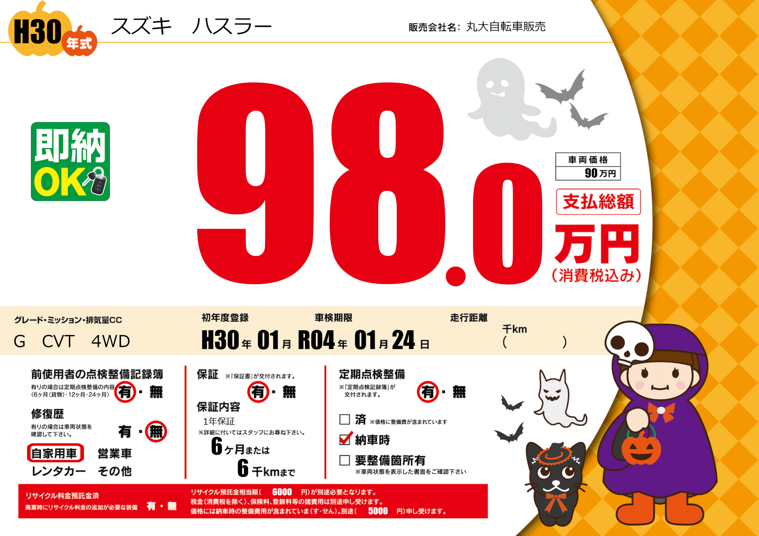 | 定期点検整備 | 定期点検整備あり 納車時あり | ||