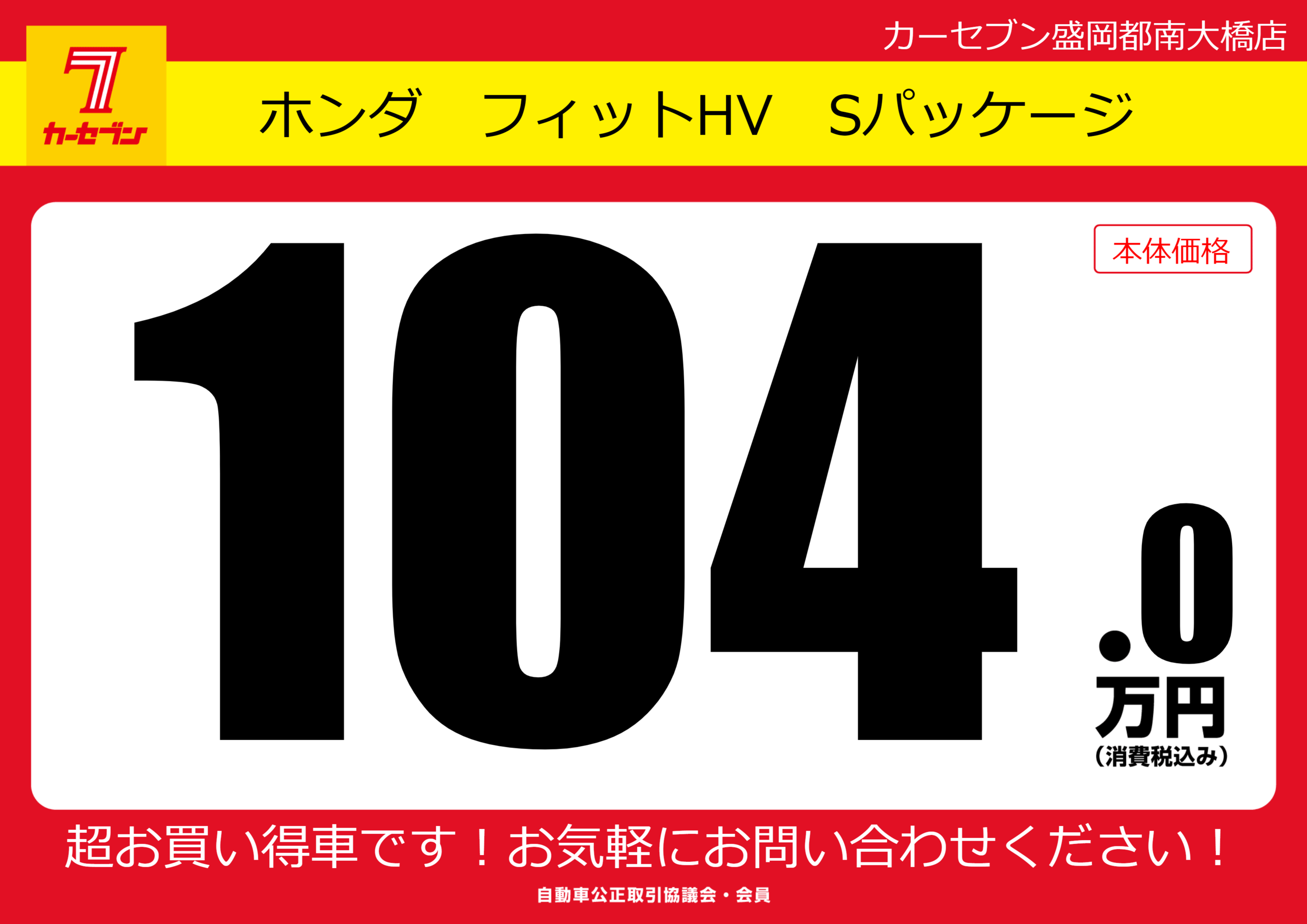| 車名 | ホンダ フィットHV Sパッケージ | グレード ミッション 排気量 |
