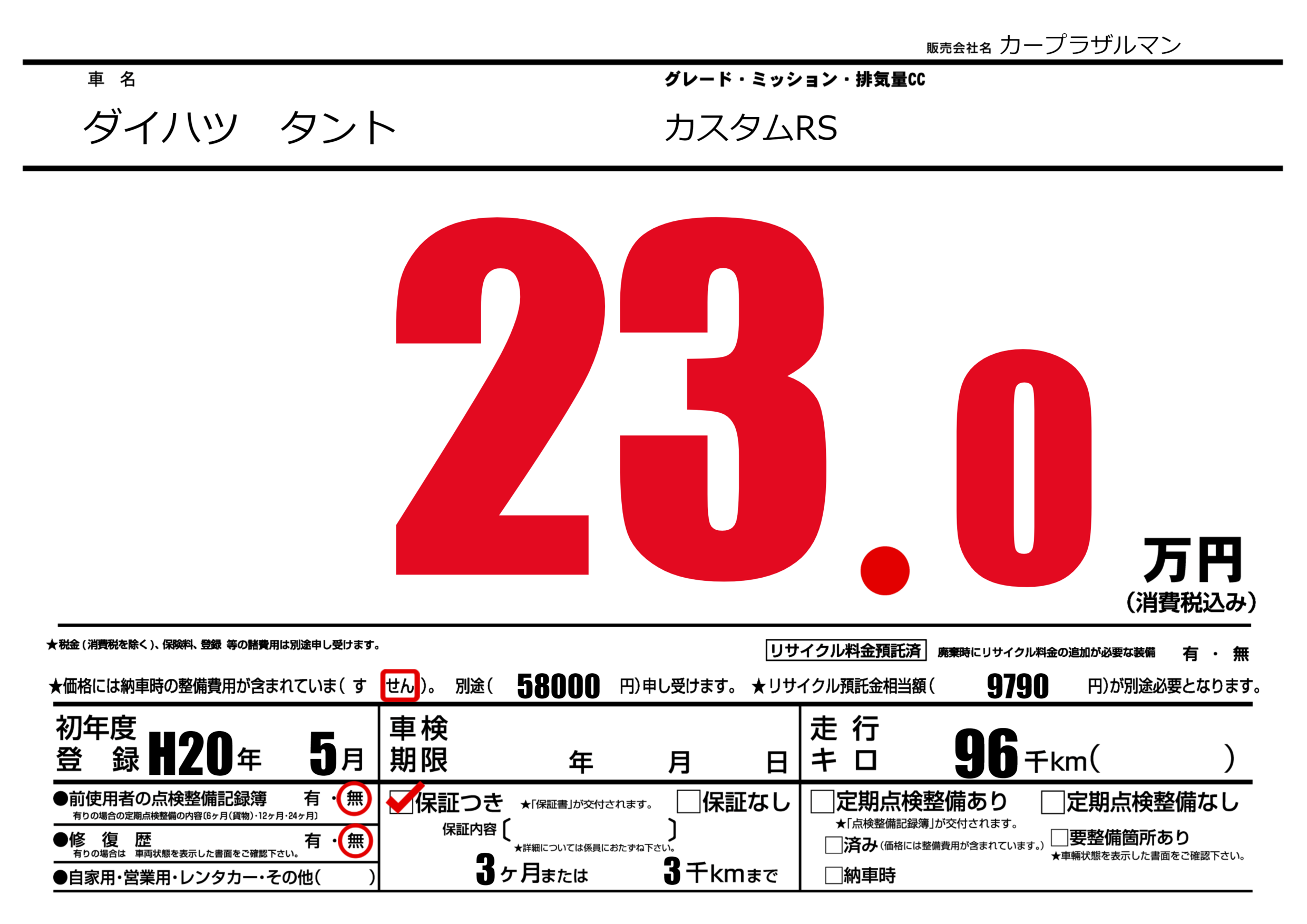 保証付き 保証内容(---) 3ヶ月または(3)千kmまで |