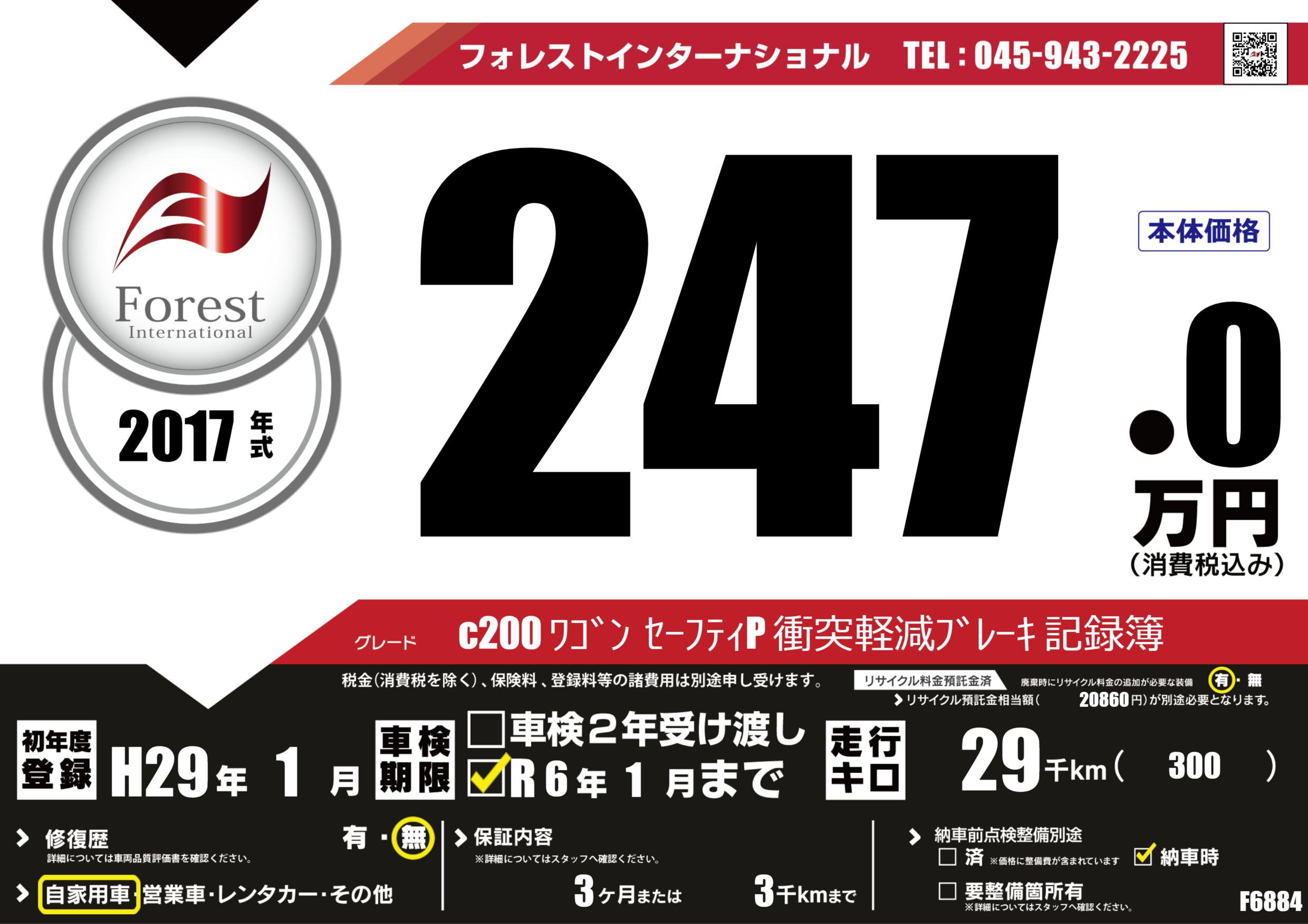 c200 ワゴン セーフティP 衝突軽減ブレーキ 記録簿 |