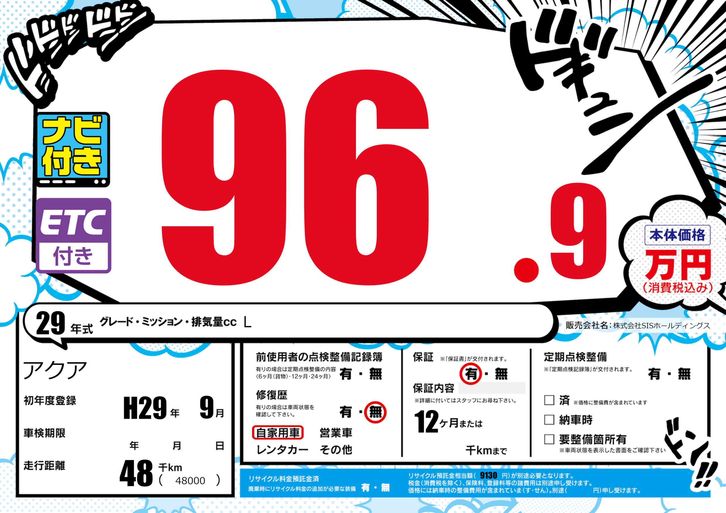 | 走行キロ | 4.8万km | 初年度登録 | H29年9月 |