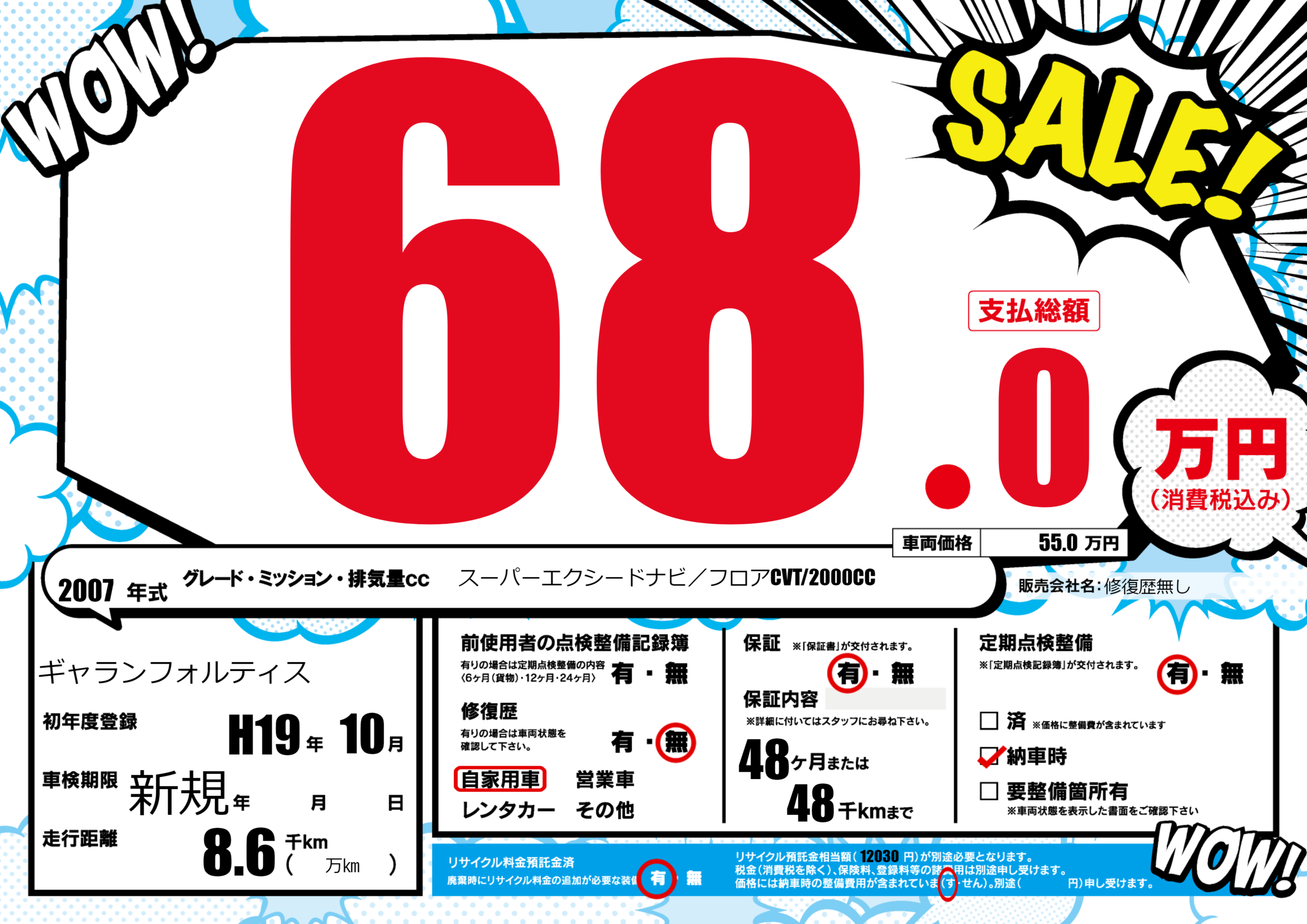 | 定期点検整備 | 定期点検整備あり 納車時あり | ||