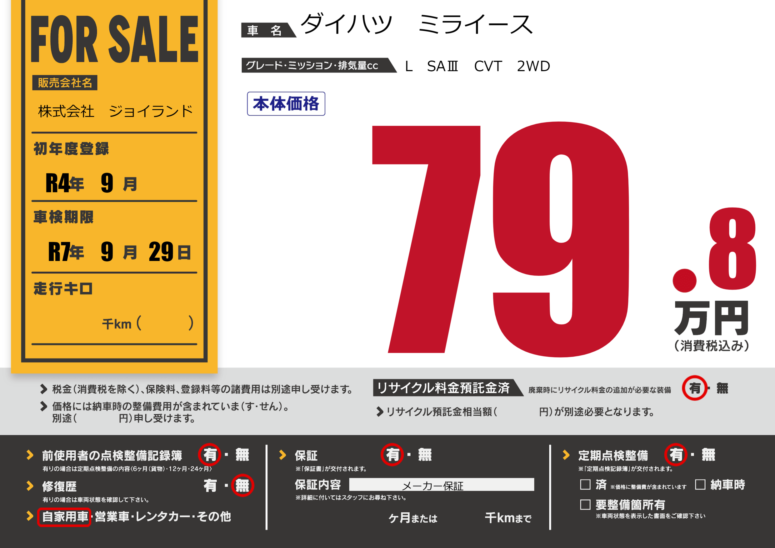 保証付き 保証内容( メーカー保証) ---ヶ月または()千kmまで |