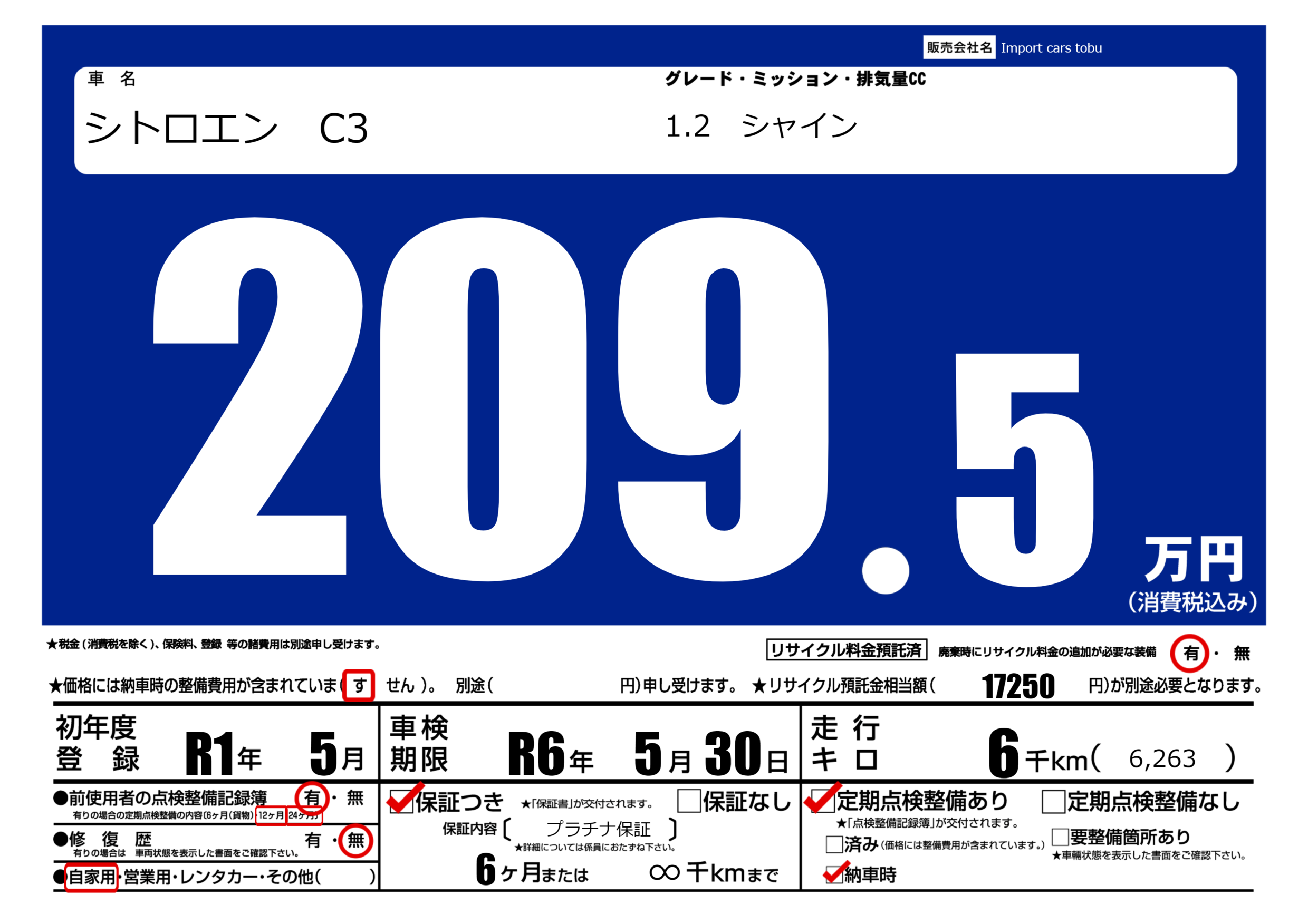 保証付き 保証内容( プラチナ保証) 6ヶ月または(∞)千kmまで |