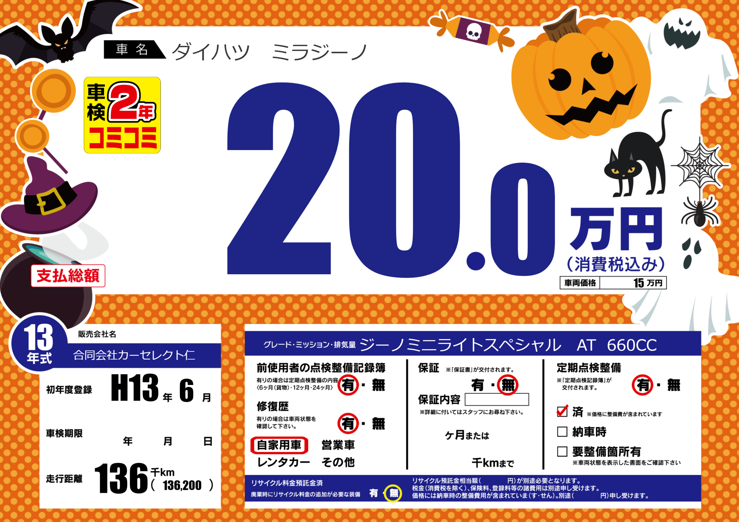 | 定期点検整備 | 定期点検整備あり 定期点検整備済み | ||