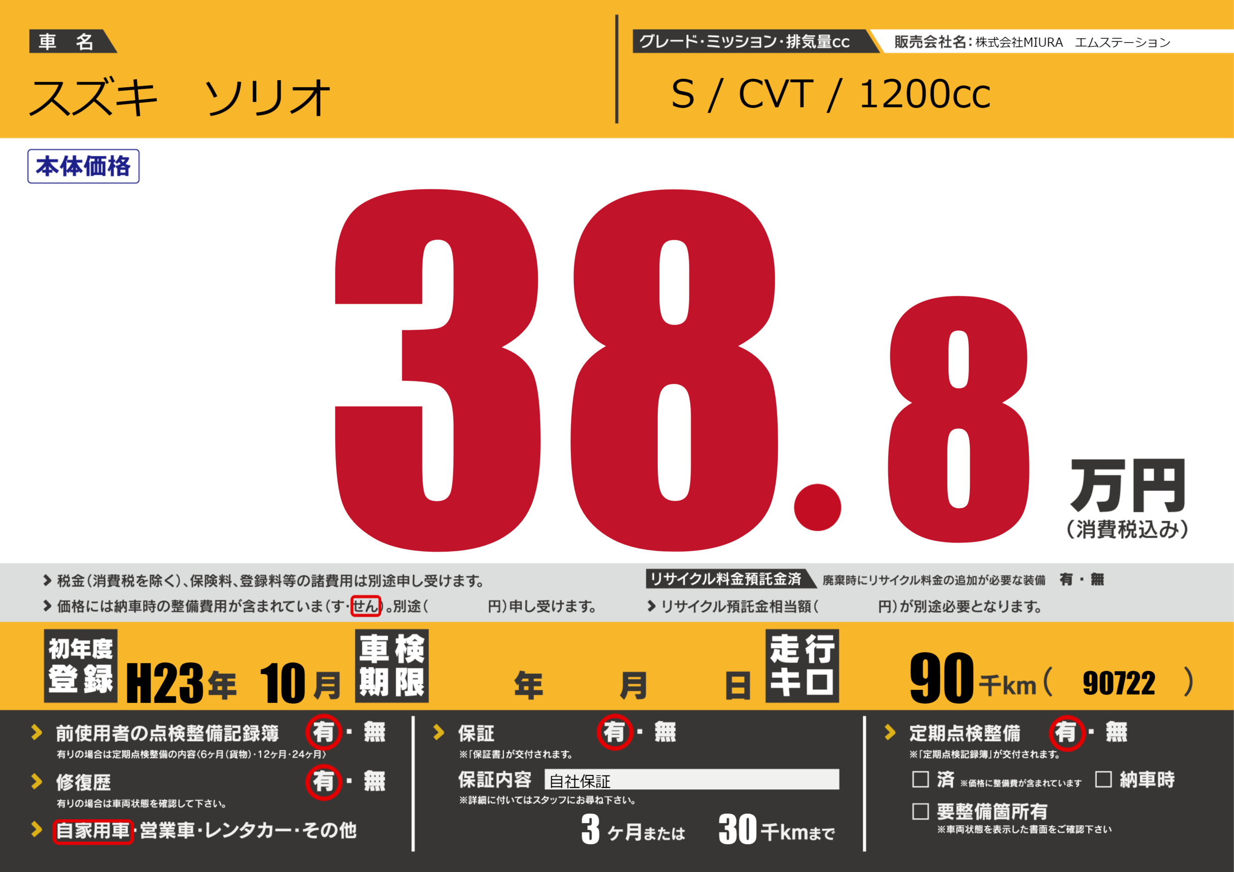 保証付き 保証内容(自社保証) 3ヶ月または(30)千kmまで |