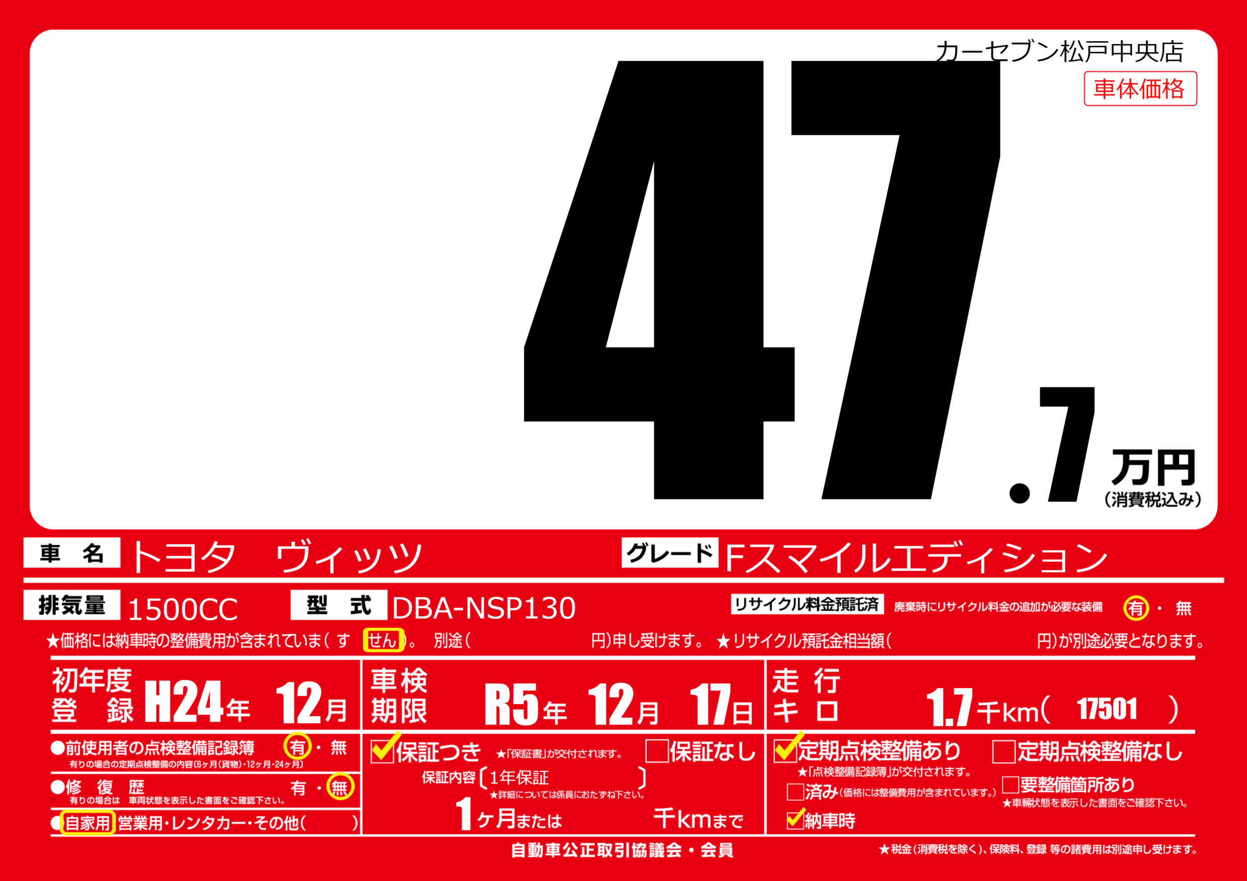 なし | 車検制限 | R5年12月17月 |