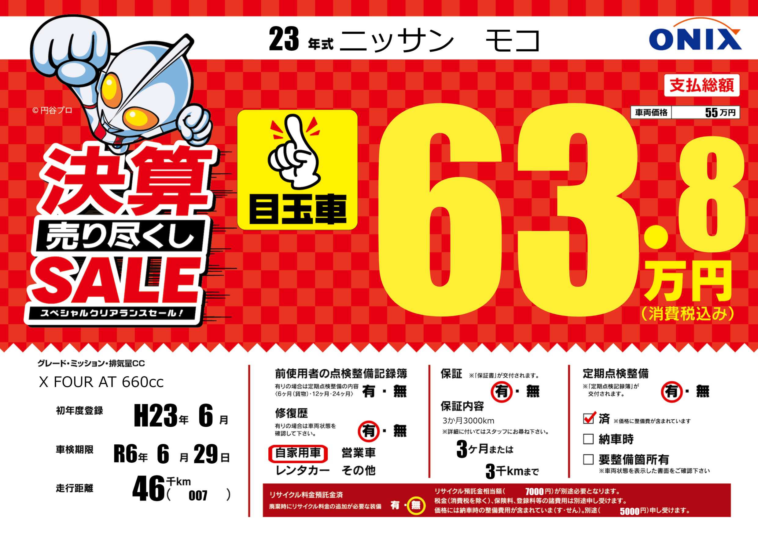 | 車名 | ニッサン モコ | グレード ミッション 排気量 |