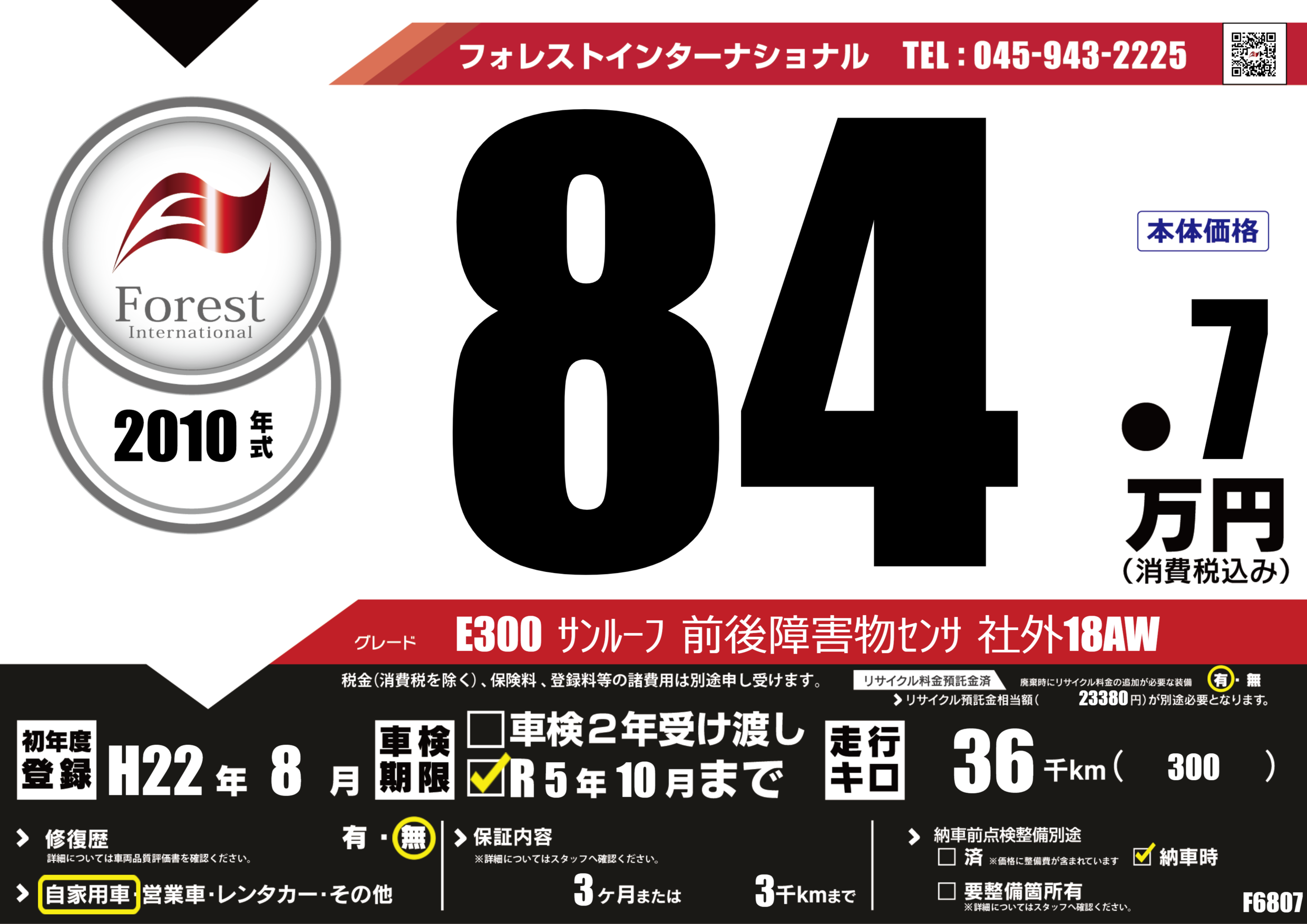 E300 サンルーフ 前後障害物センサ 社外18AW |