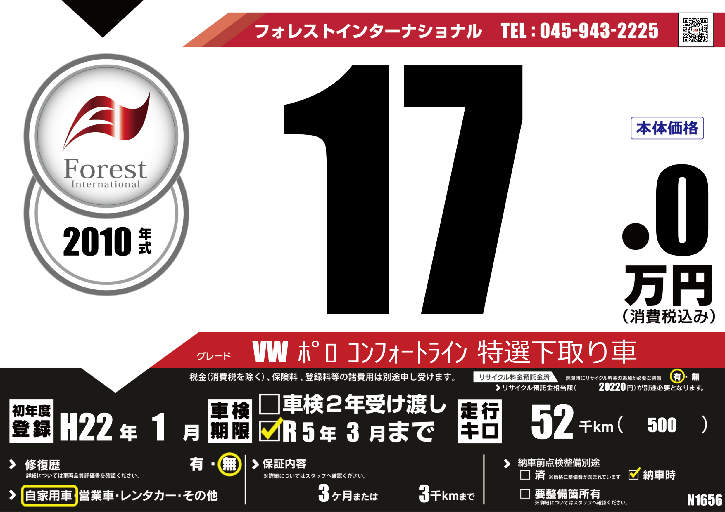 | 走行キロ | 5.2万km | 初年度登録 | H22年1月 |