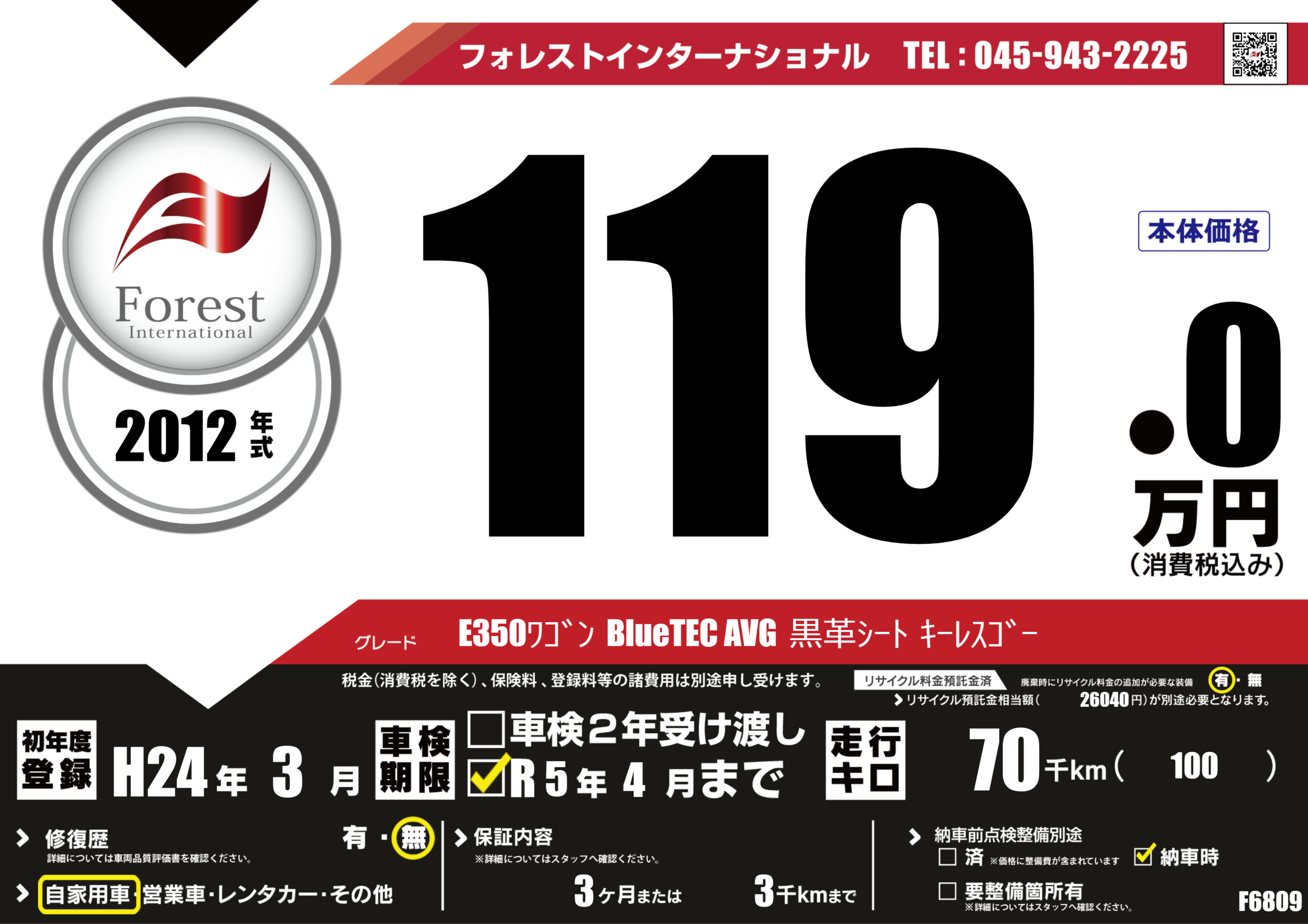 | 走行キロ | 7万km | 初年度登録 | H24年3月 |