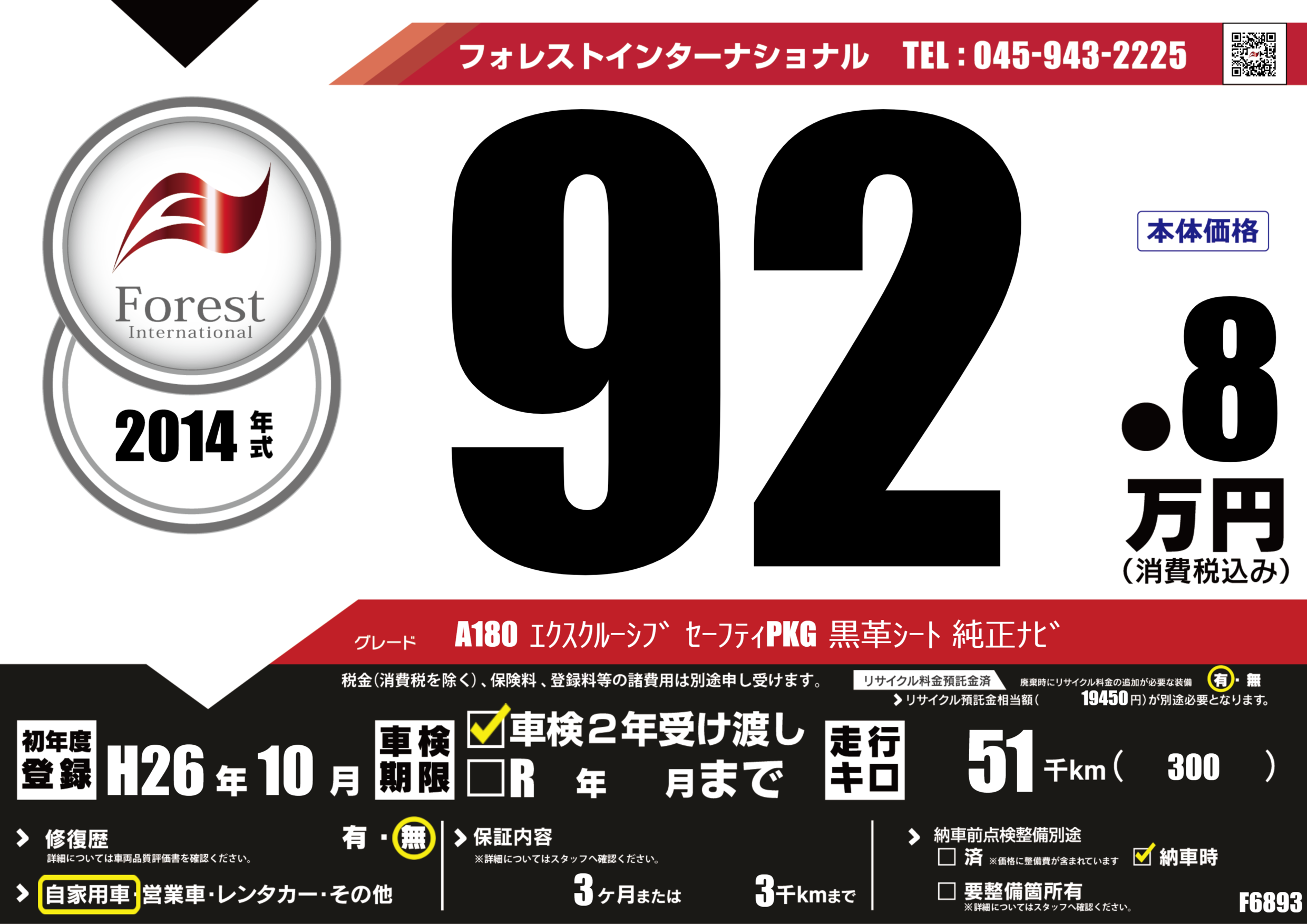 | 走行キロ | 5.1万km | 初年度登録 | H26年10月 |