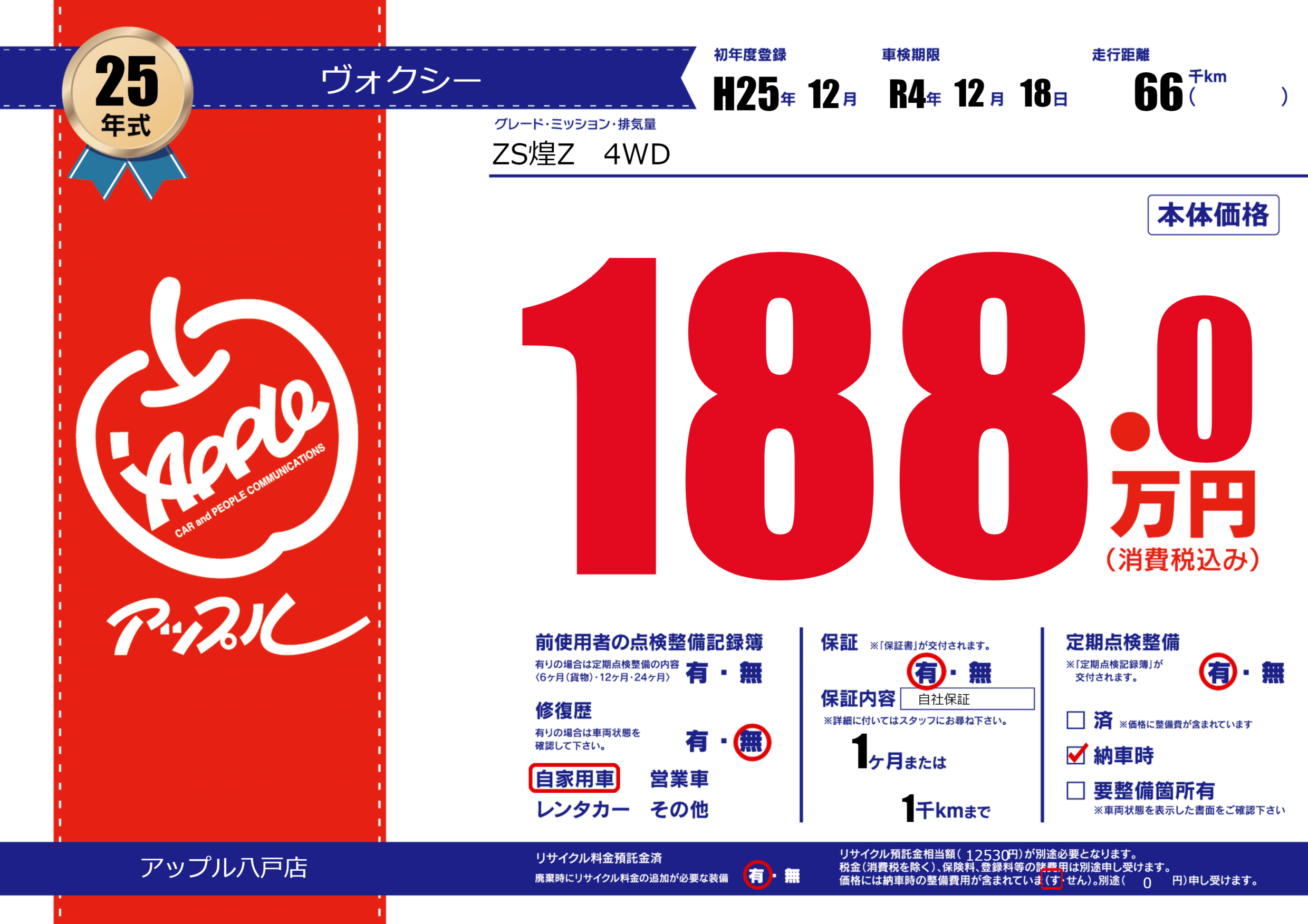 | 走行キロ | 6.6万km | 初年度登録 | H25年12月 |
