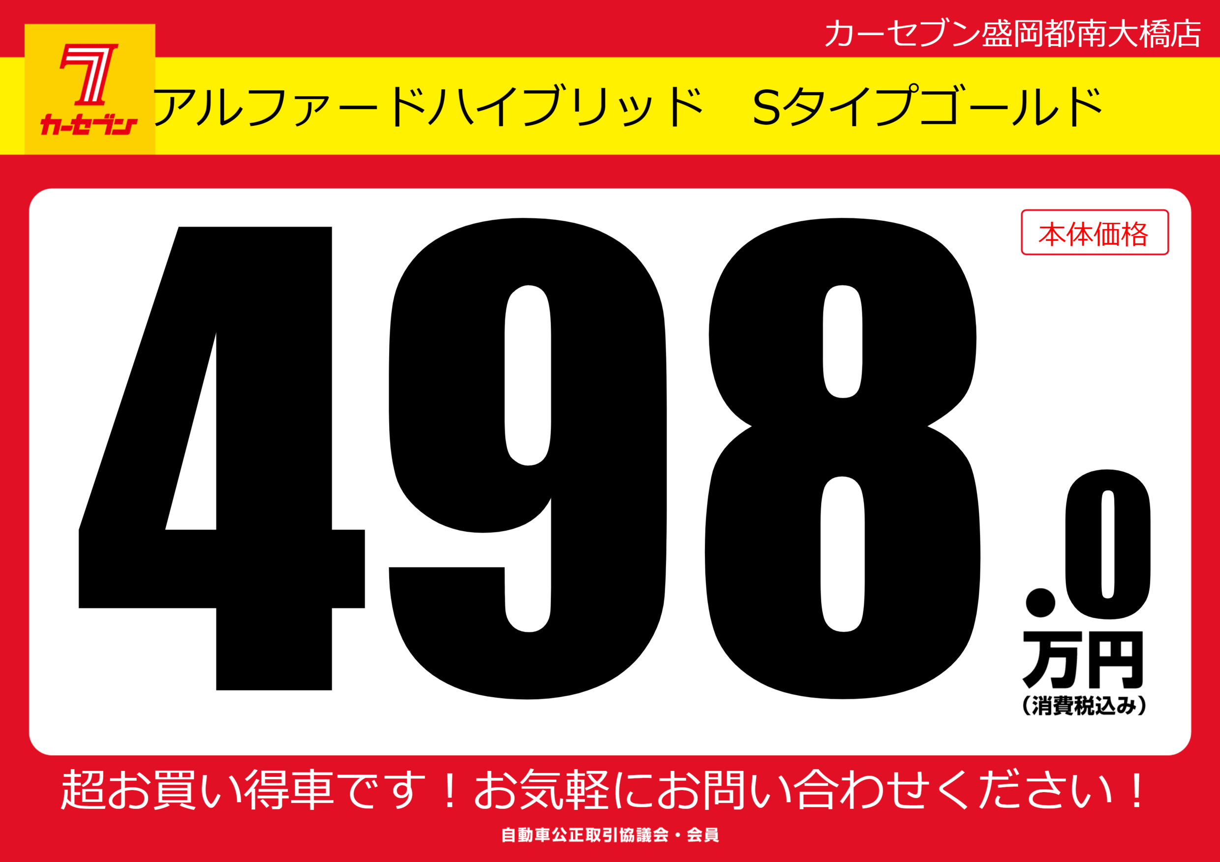 | 車名 | アルファードハイブリッド Sタイプゴールド | グレード ミッション 排気量 |