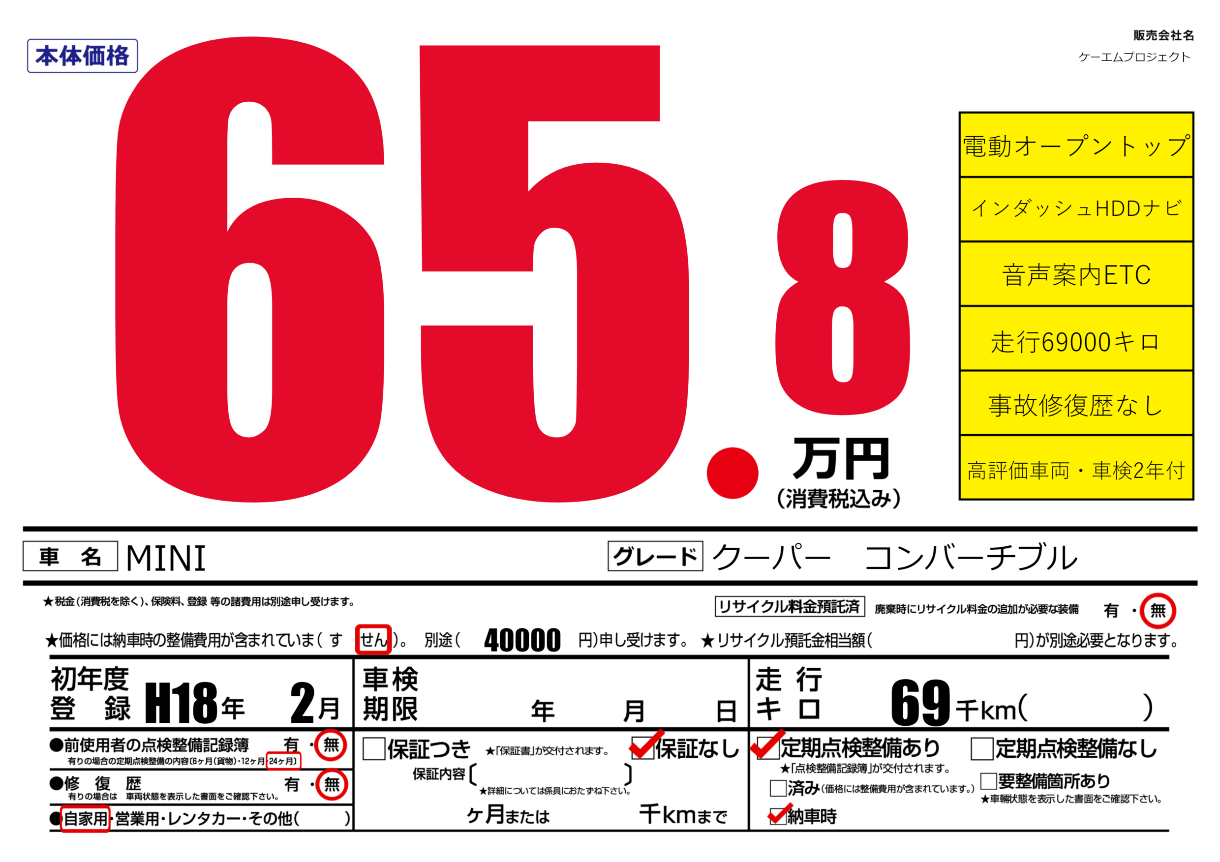 | 定期点検整備 | 定期点検整備あり 納車時あり | ||