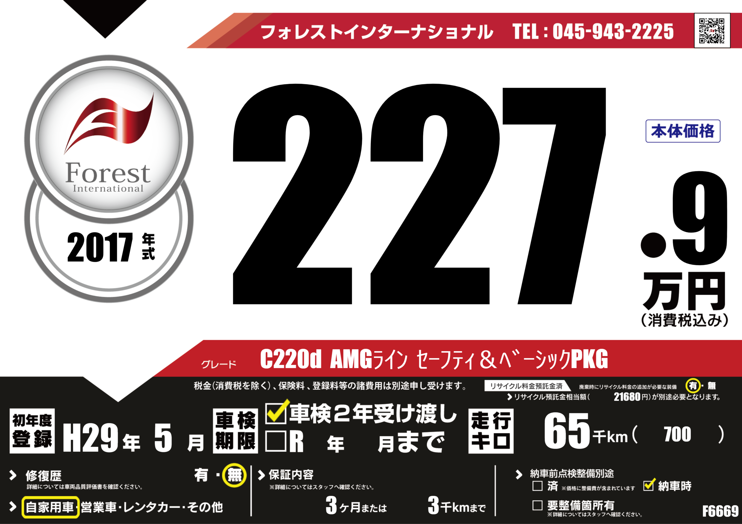 | 走行キロ | 6.5万km | 初年度登録 | H29年5月 |