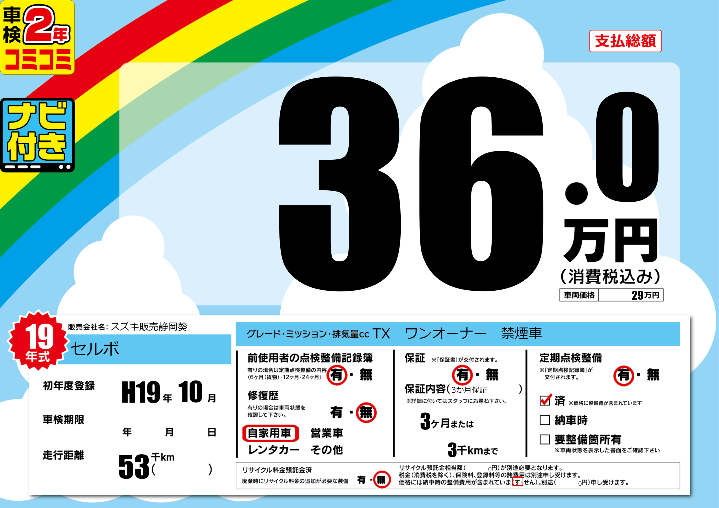 | 定期点検整備 | 定期点検整備あり 定期点検整備済み | ||