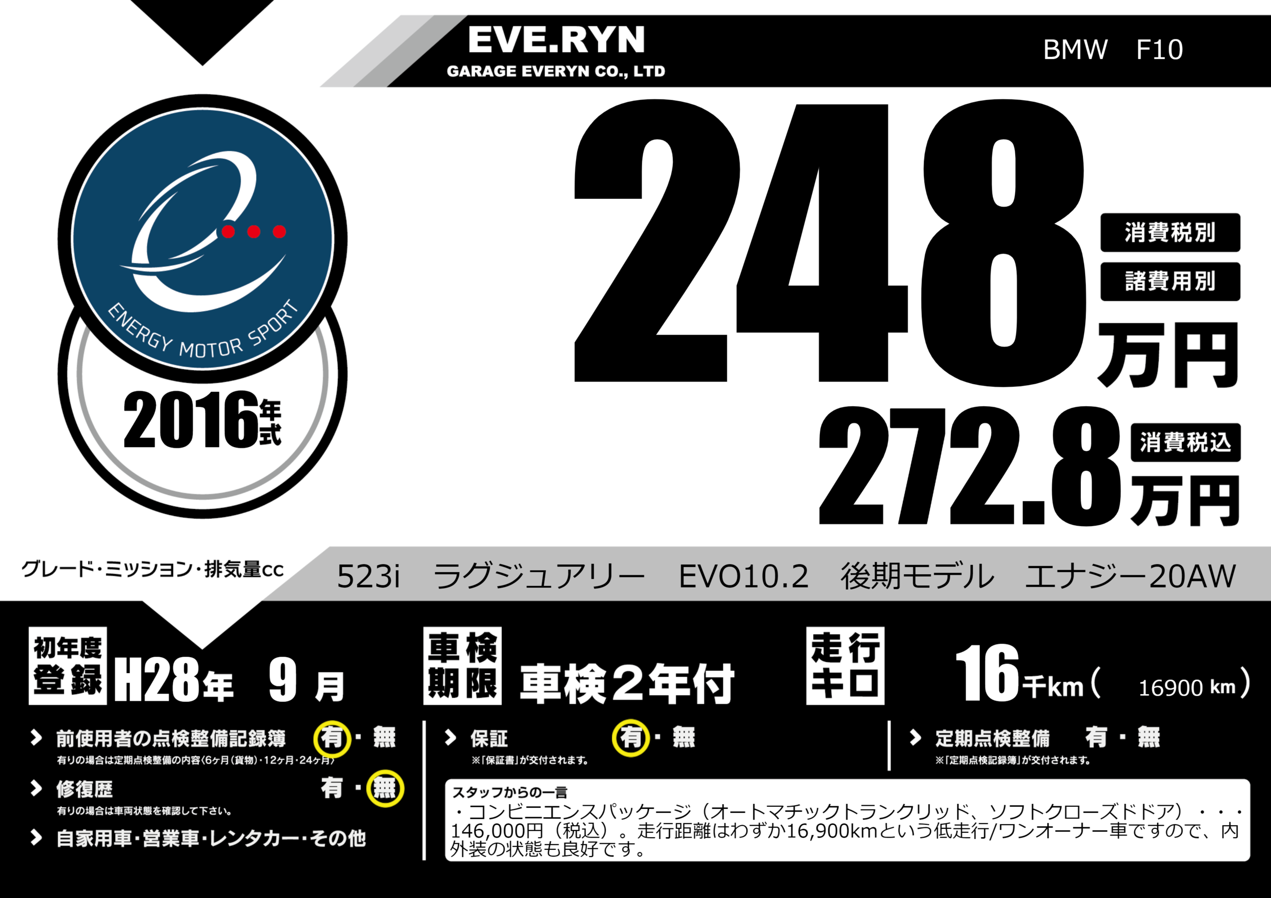 | 初年度登録 | H28年9月 | ||