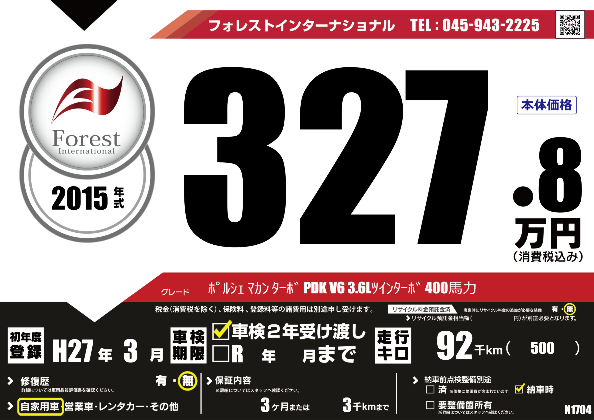 ポルシェ マカン ターボ PDK V6 3.6Lツインターボ 400馬力 |