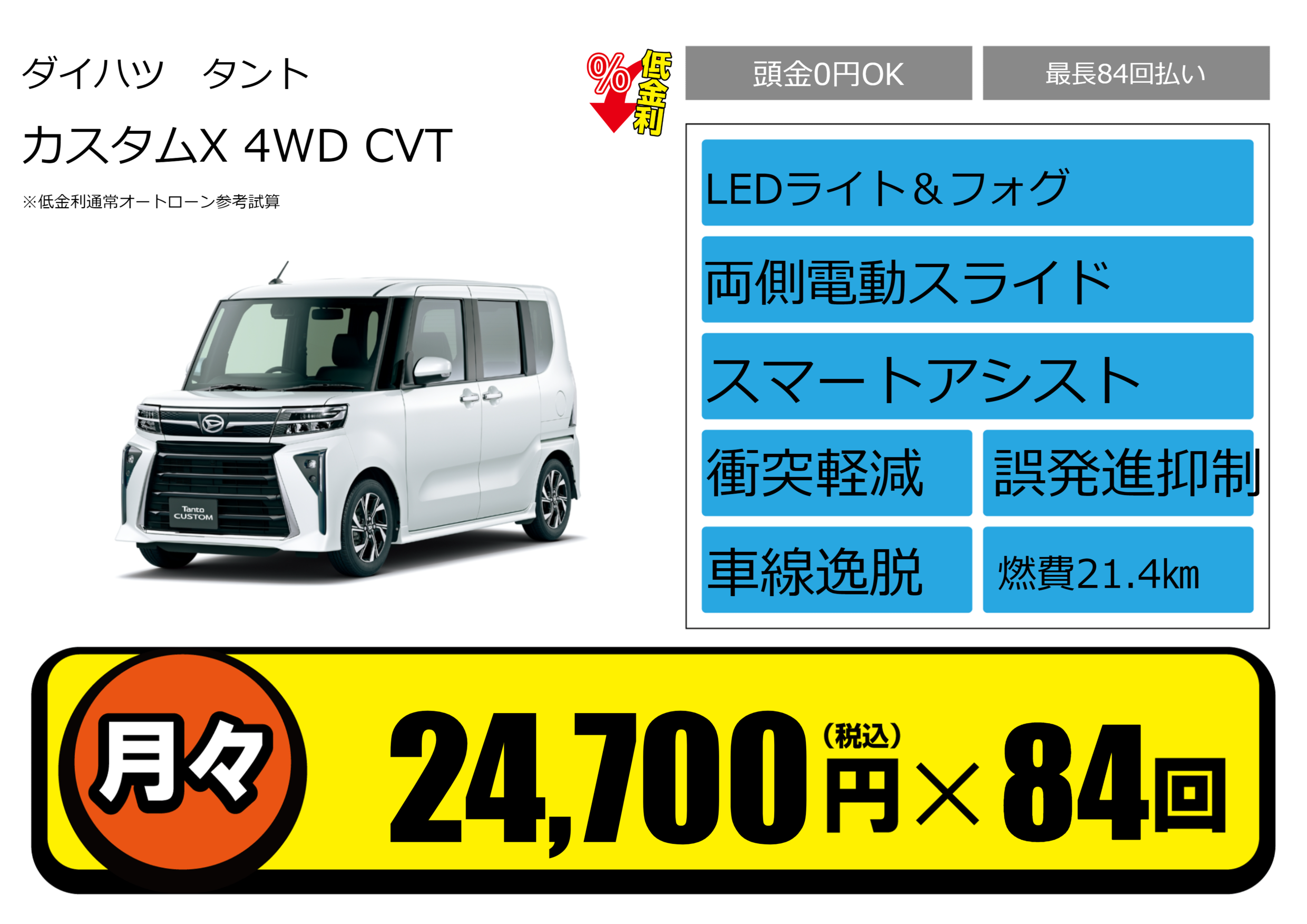 | 車名 | カスタムX 4WD CVT | グレード ミッション 排気量 |