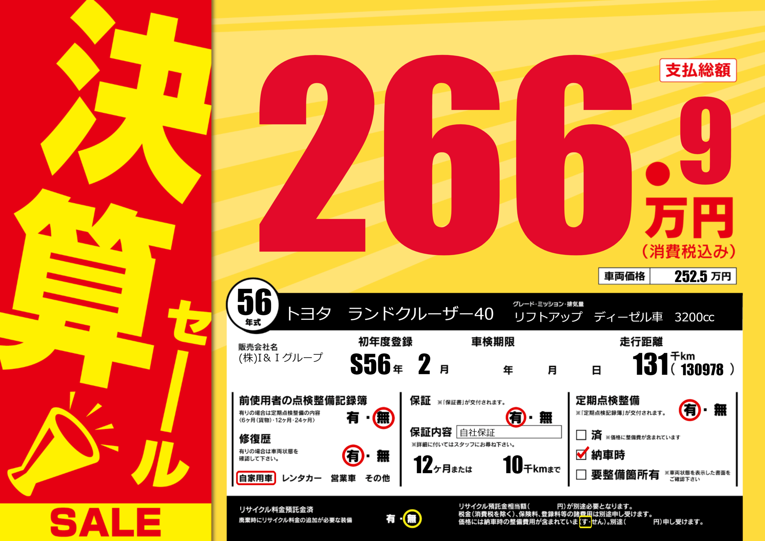 | 走行キロ | 13.1万km | 初年度登録 | S56年2月 |