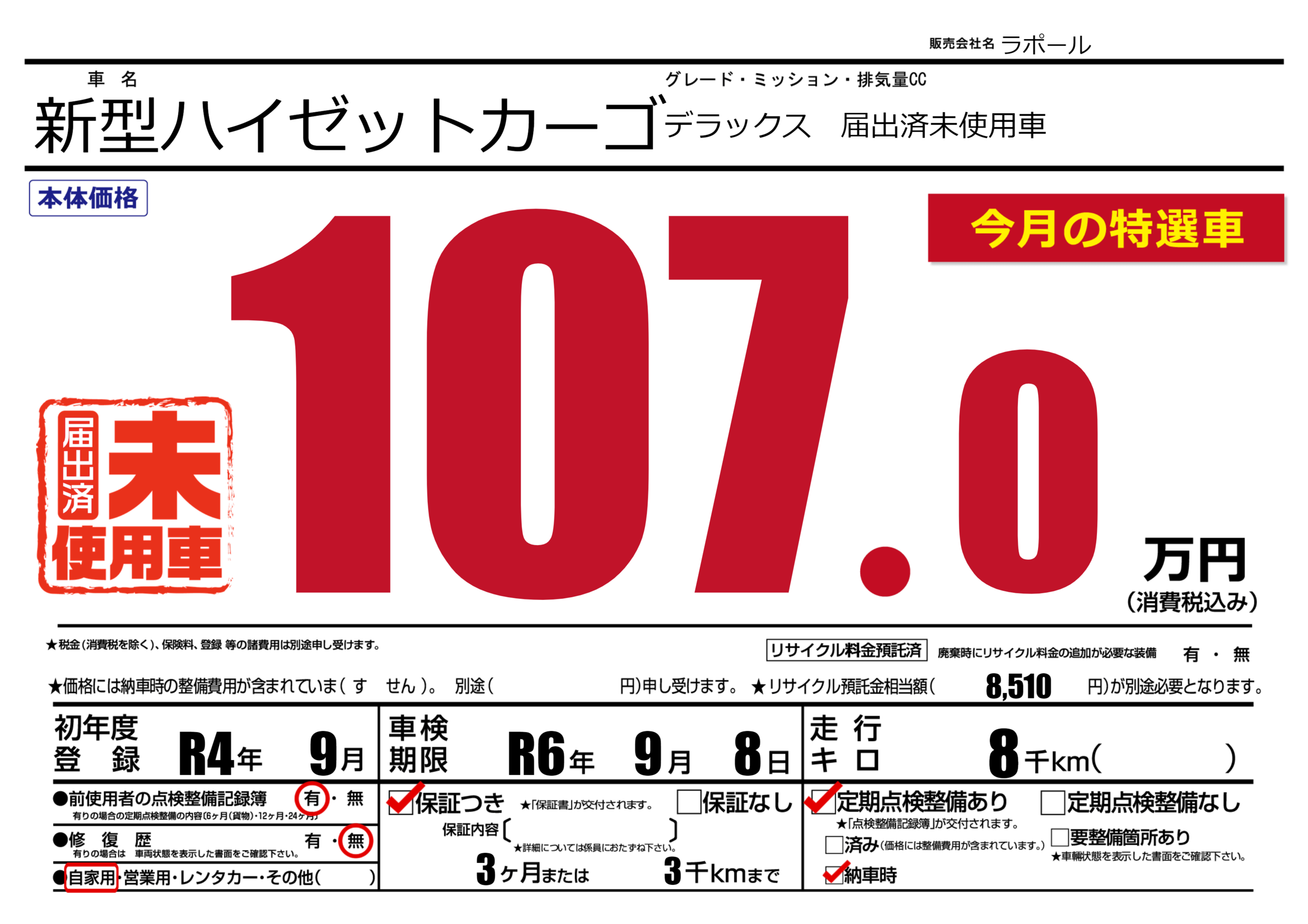 保証付き 保証内容(---) 3ヶ月または(3)千kmまで |