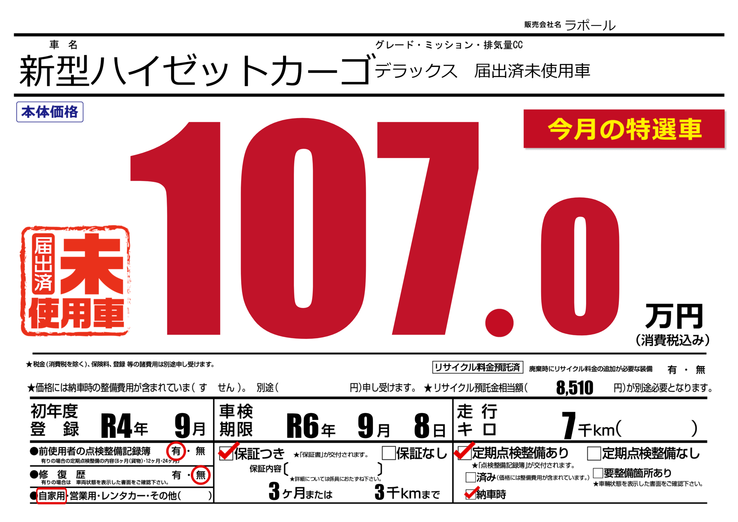 保証付き 保証内容(---) 3ヶ月または(3)千kmまで |