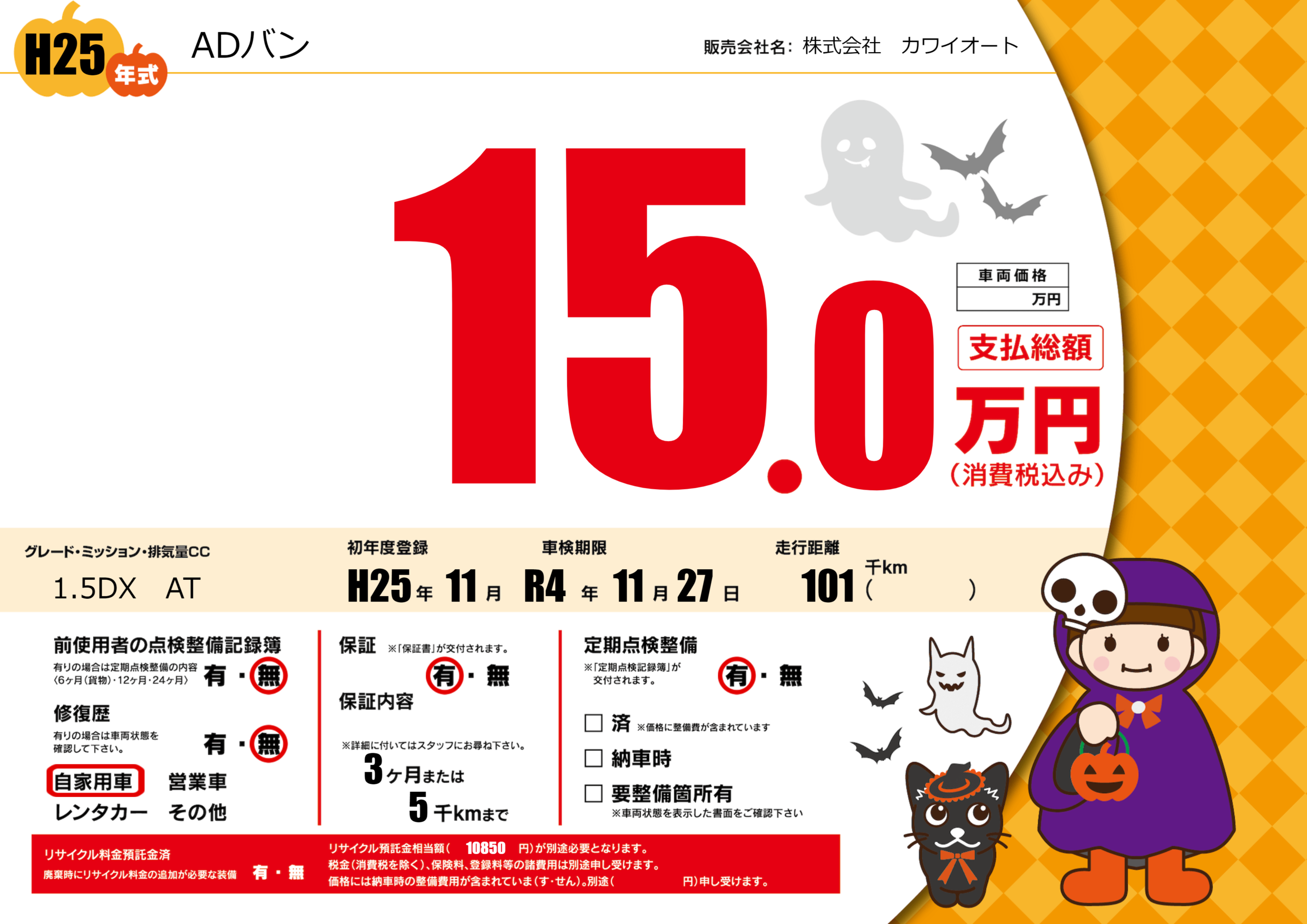 | 車名 | ADバン | グレード ミッション 排気量 |