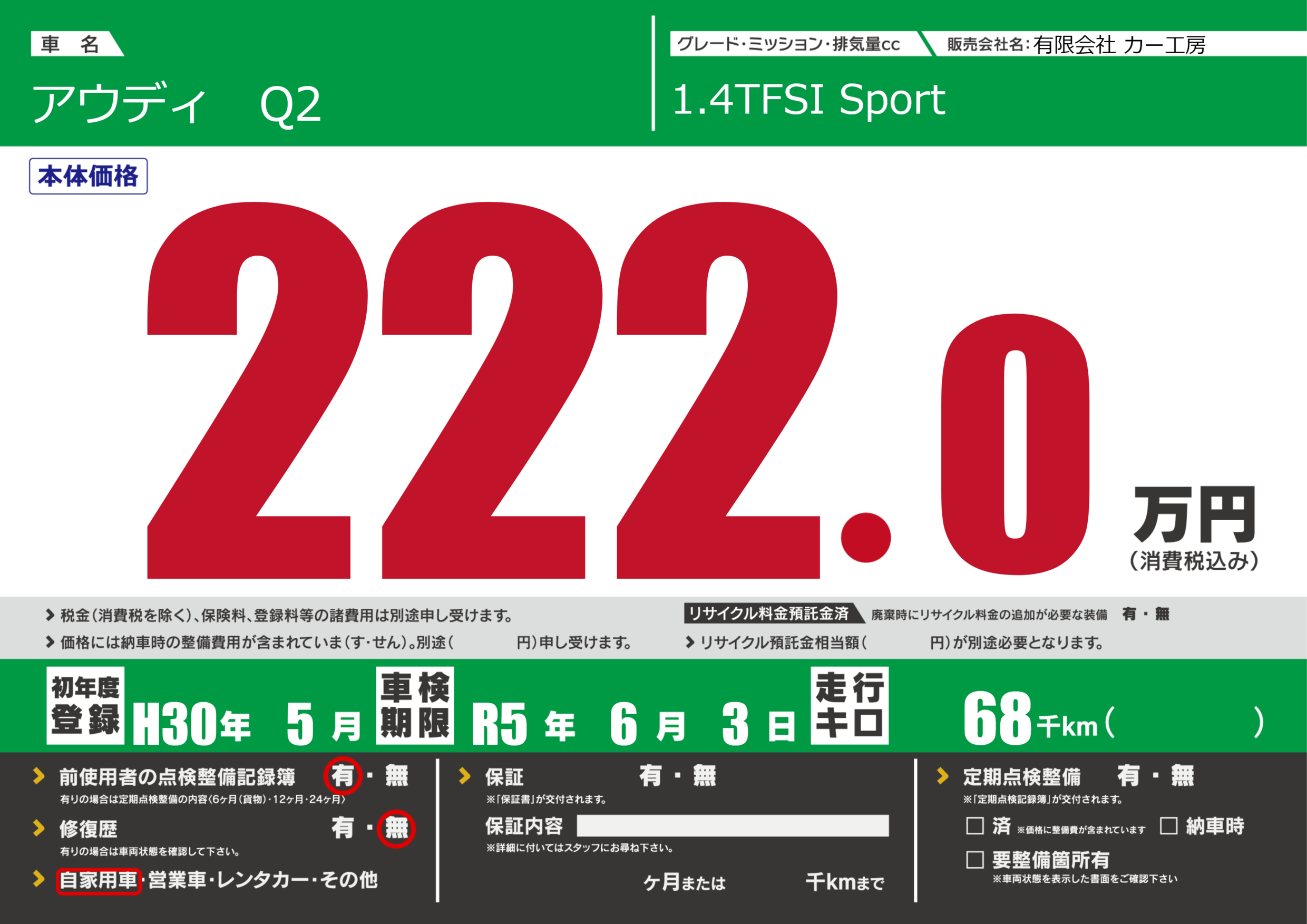 なし | 車検制限 | R5年6月3月 |
