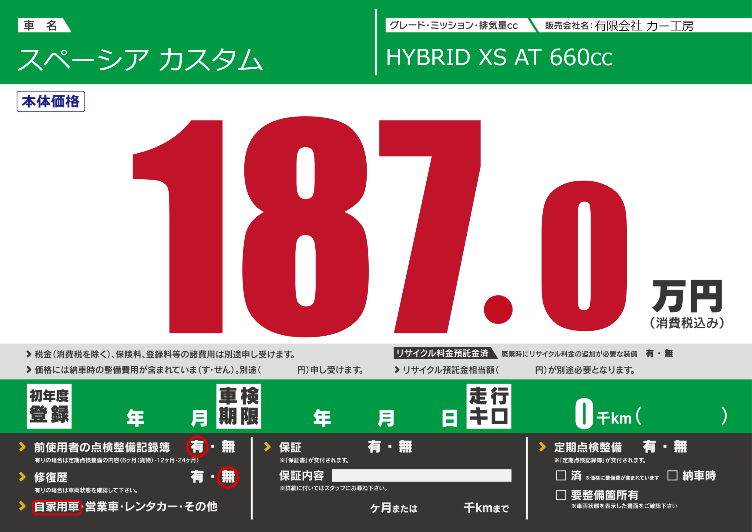 | 車名 | スペーシア カスタム | グレード ミッション 排気量 |