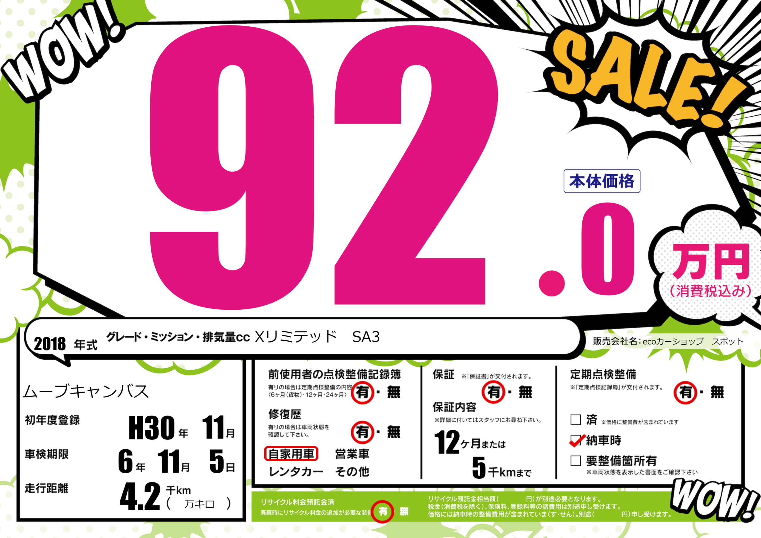 | 初年度登録 | H30年11月 | ||