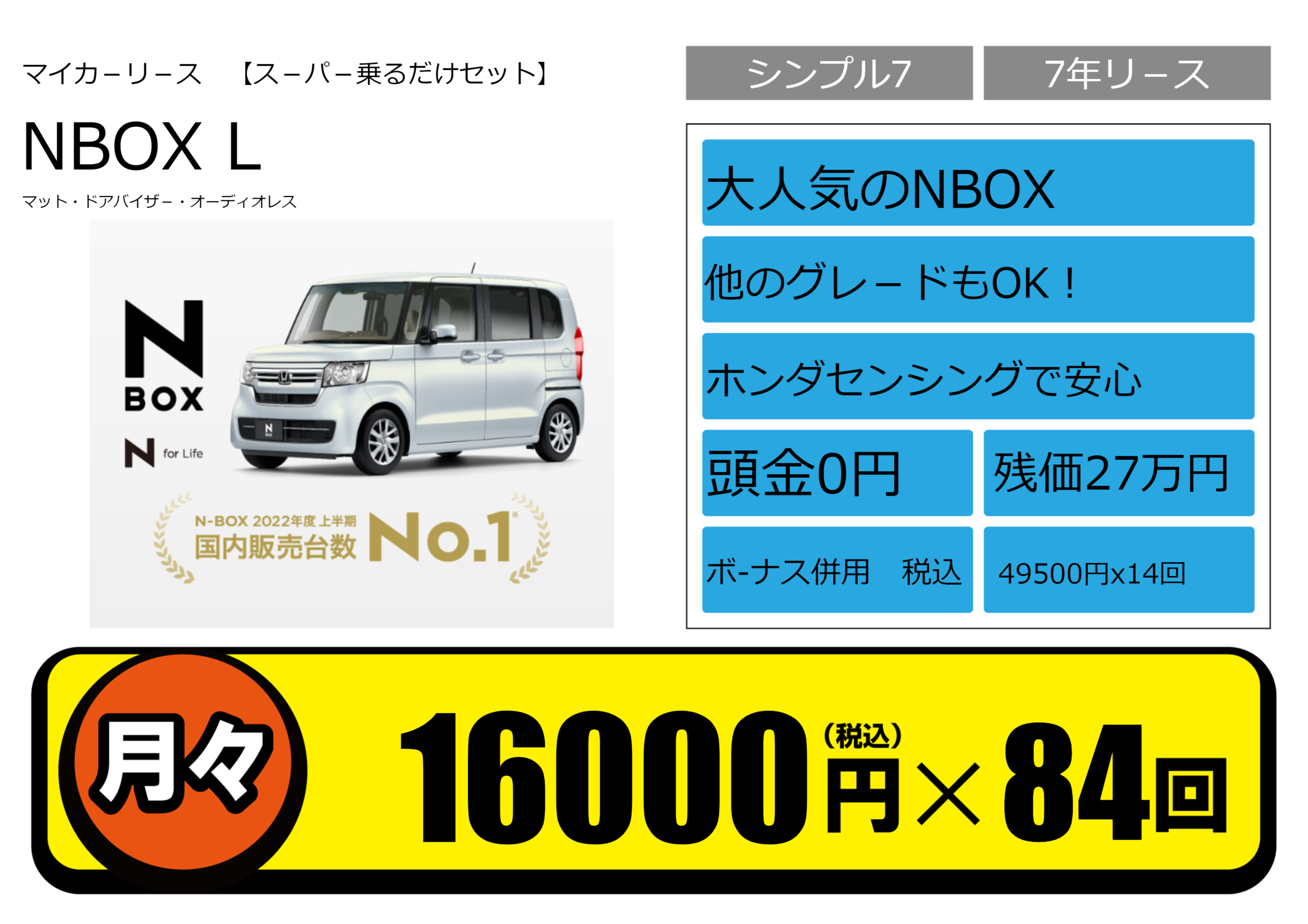 | 車名 | NBOX L | グレード ミッション 排気量 |
