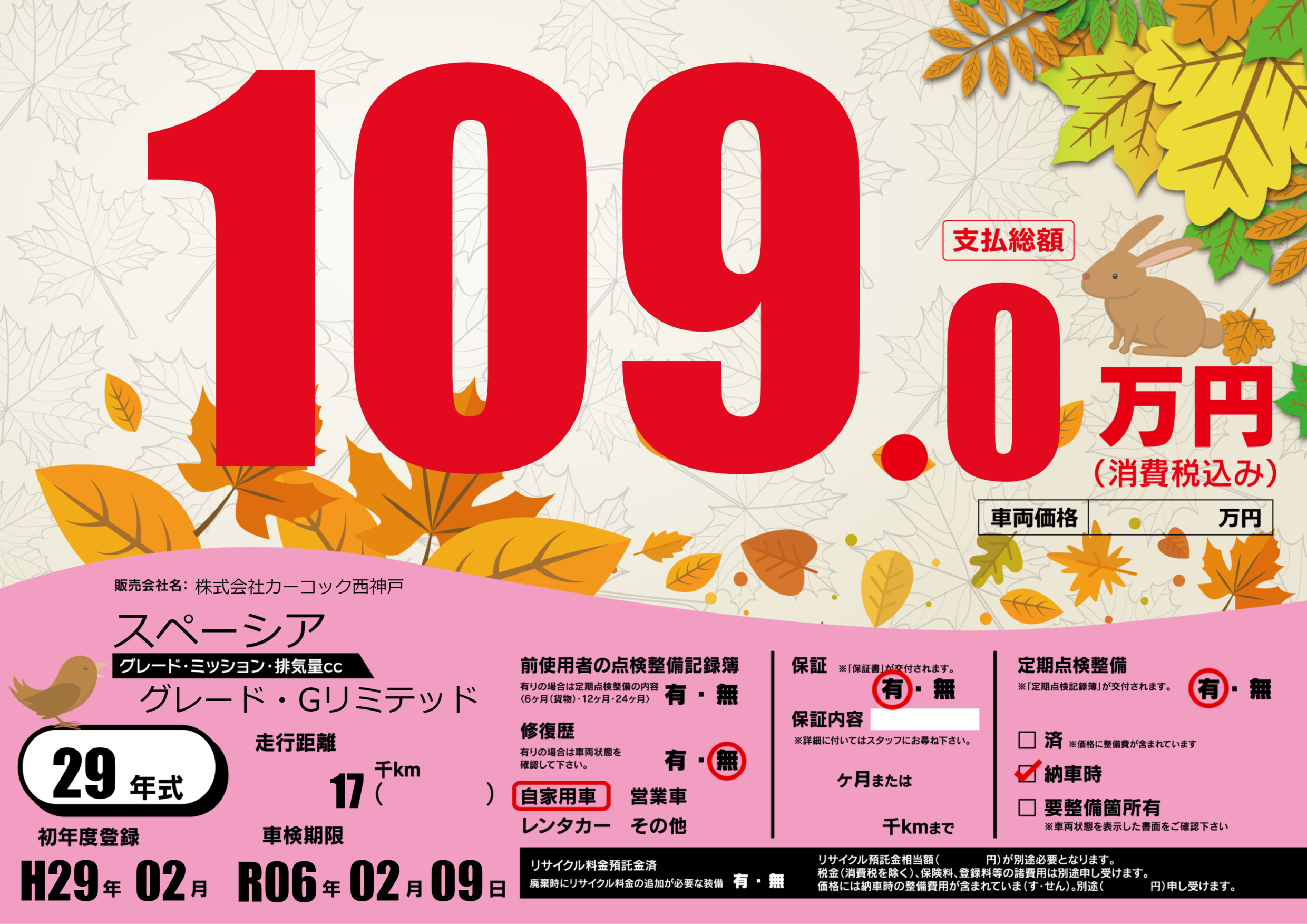 | 定期点検整備 | 定期点検整備あり 納車時あり | ||
